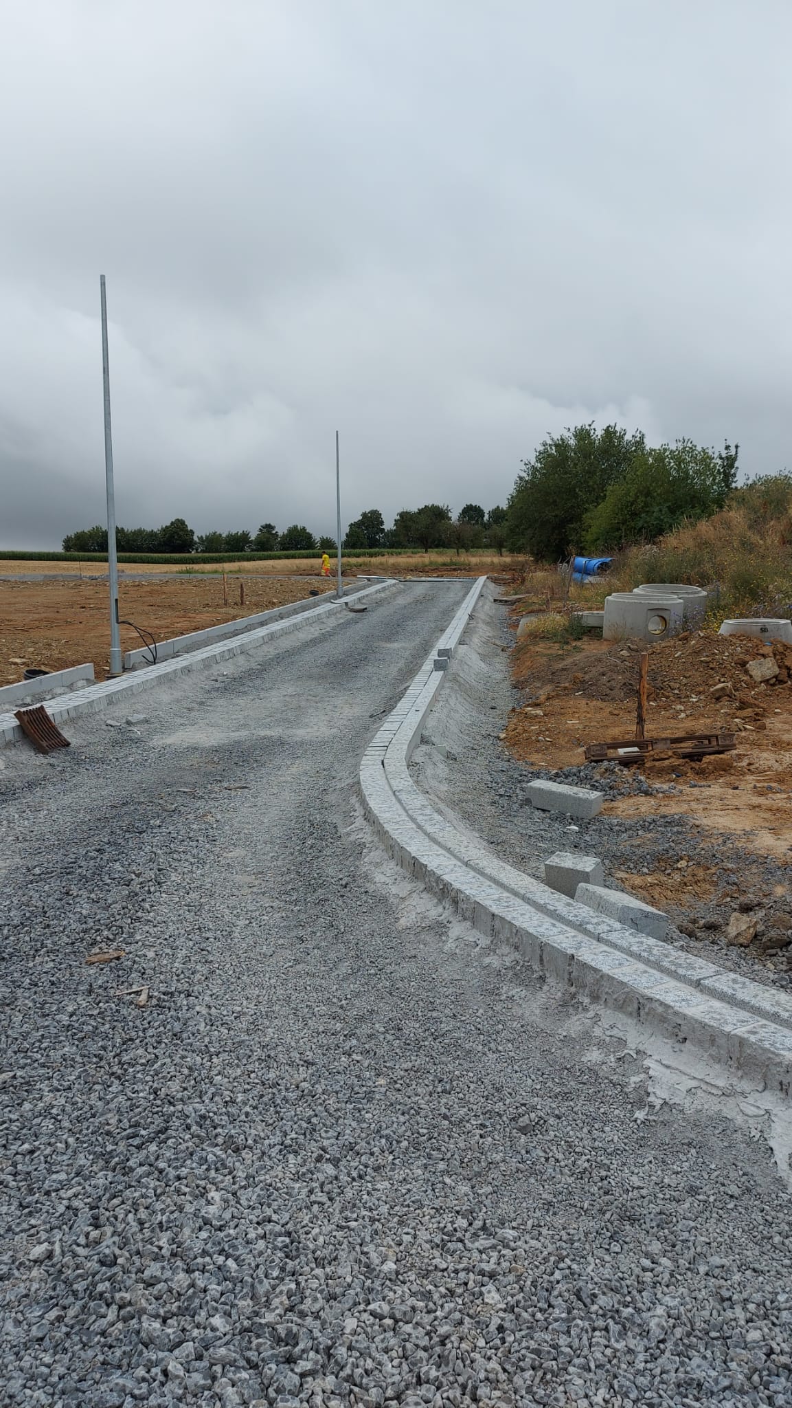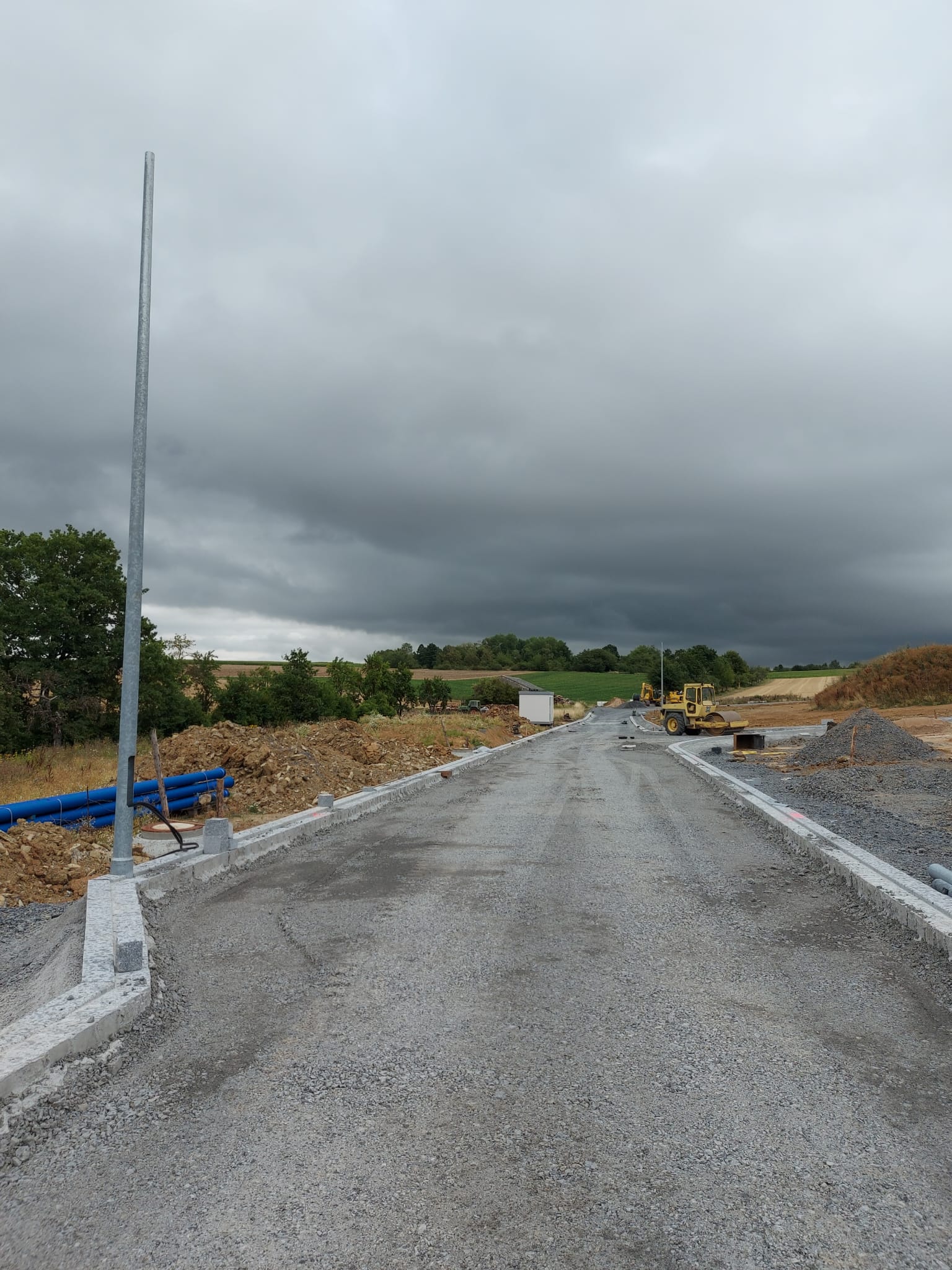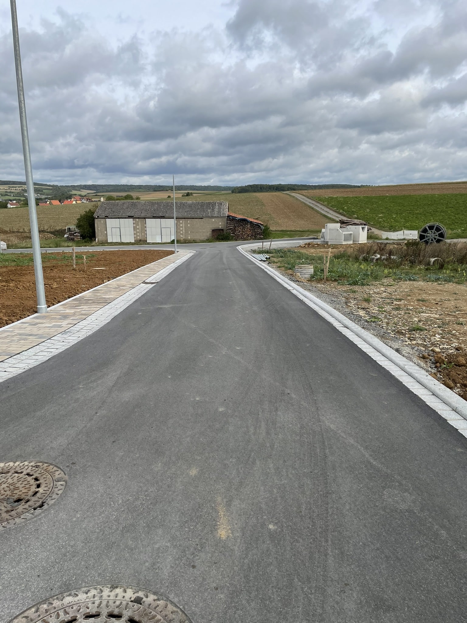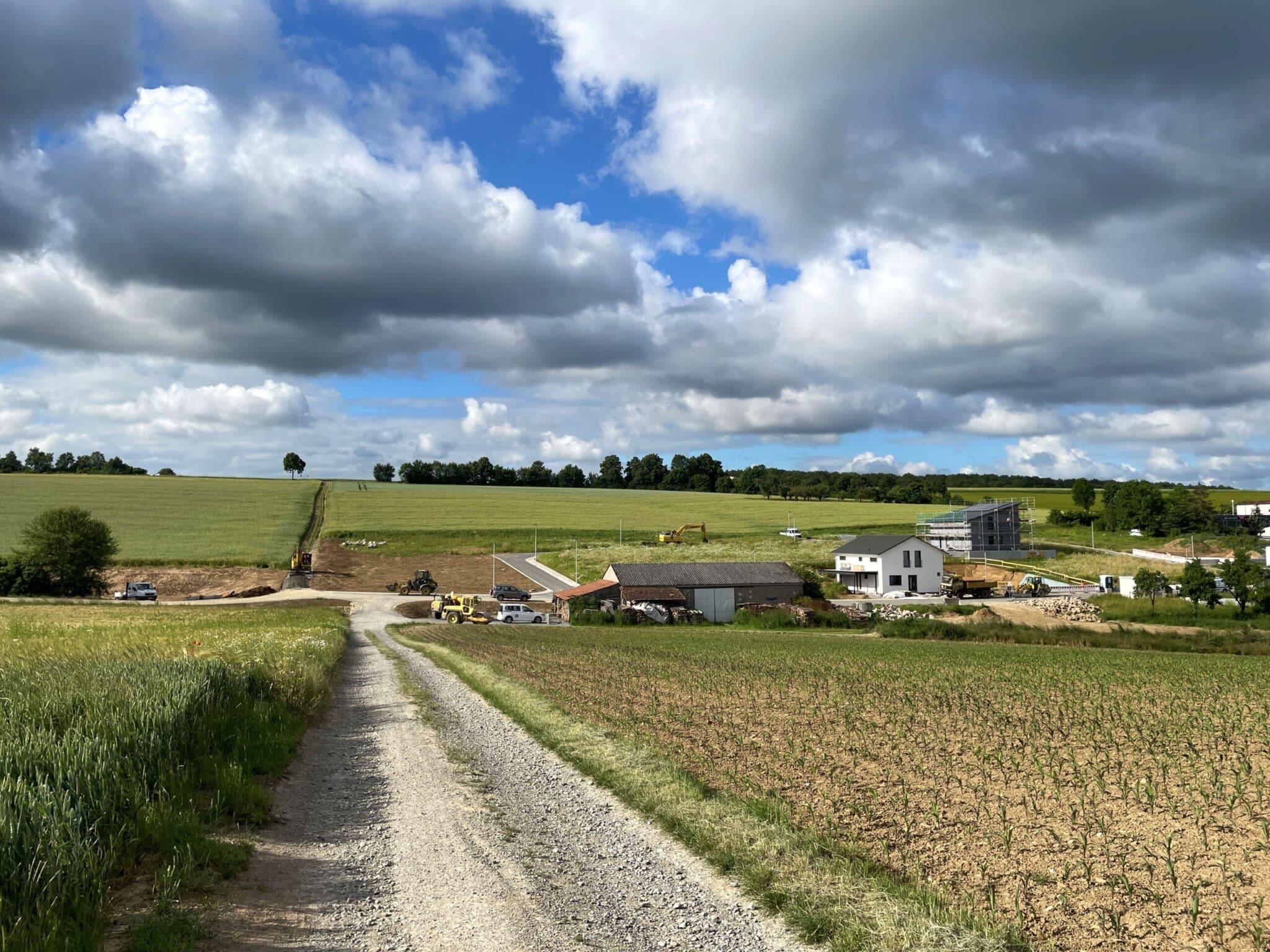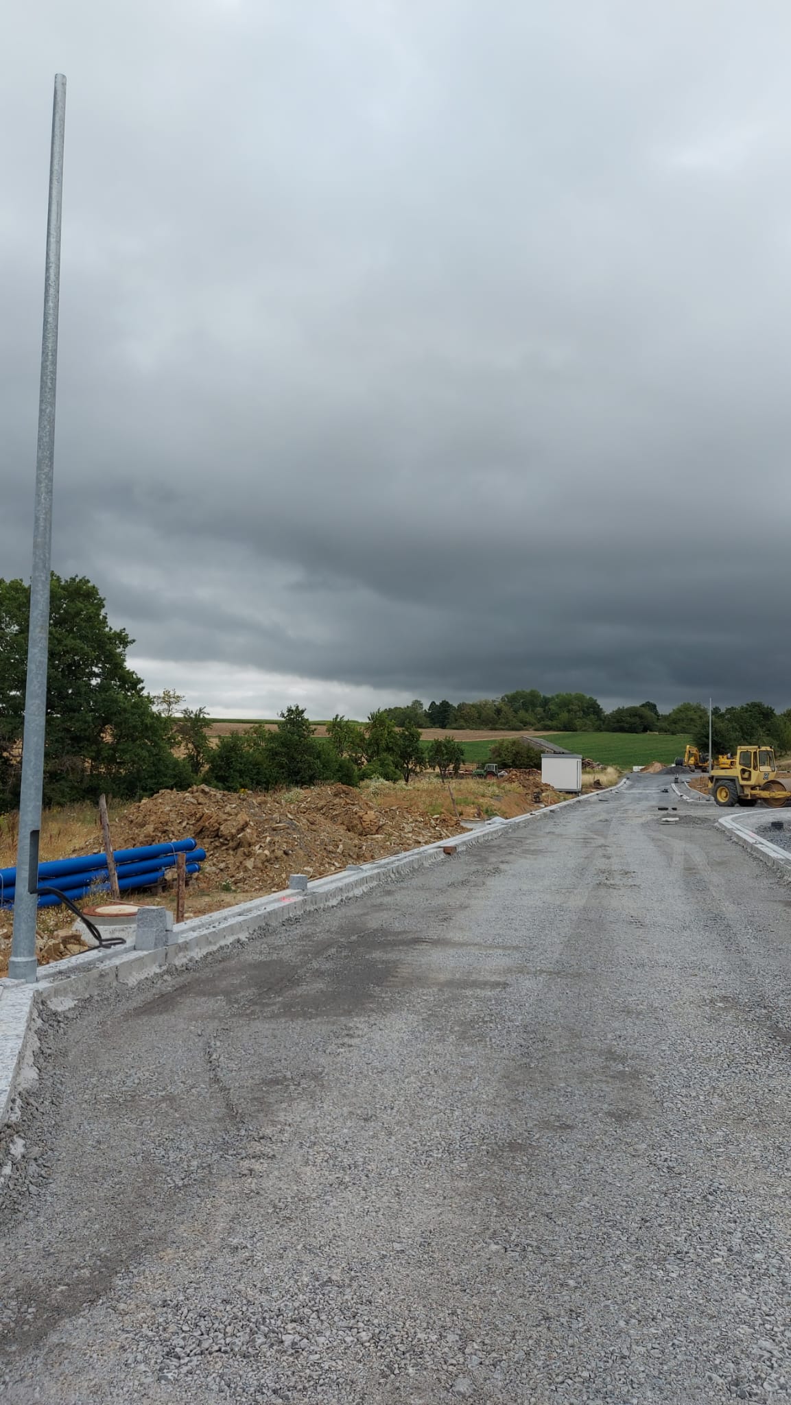 Der Asphalt ist von der Zufahrt Fa. Hartmann bis zum Baugebietsende eingebaut. Momentan werden die Gehwege gepflastert und Restarbeiten im Baugebiet ausgeführt.