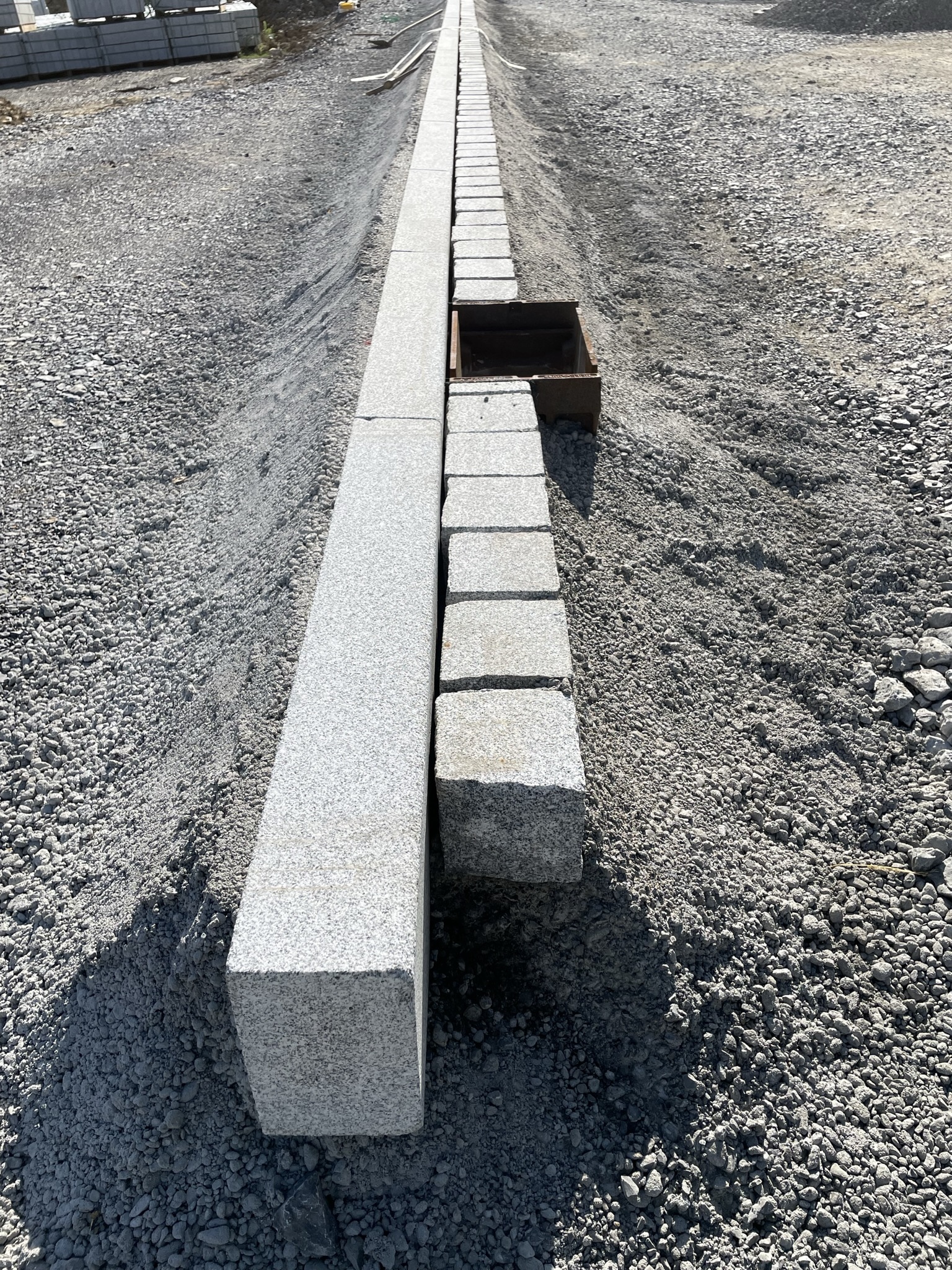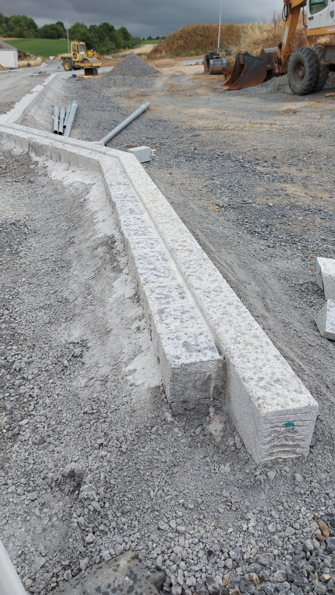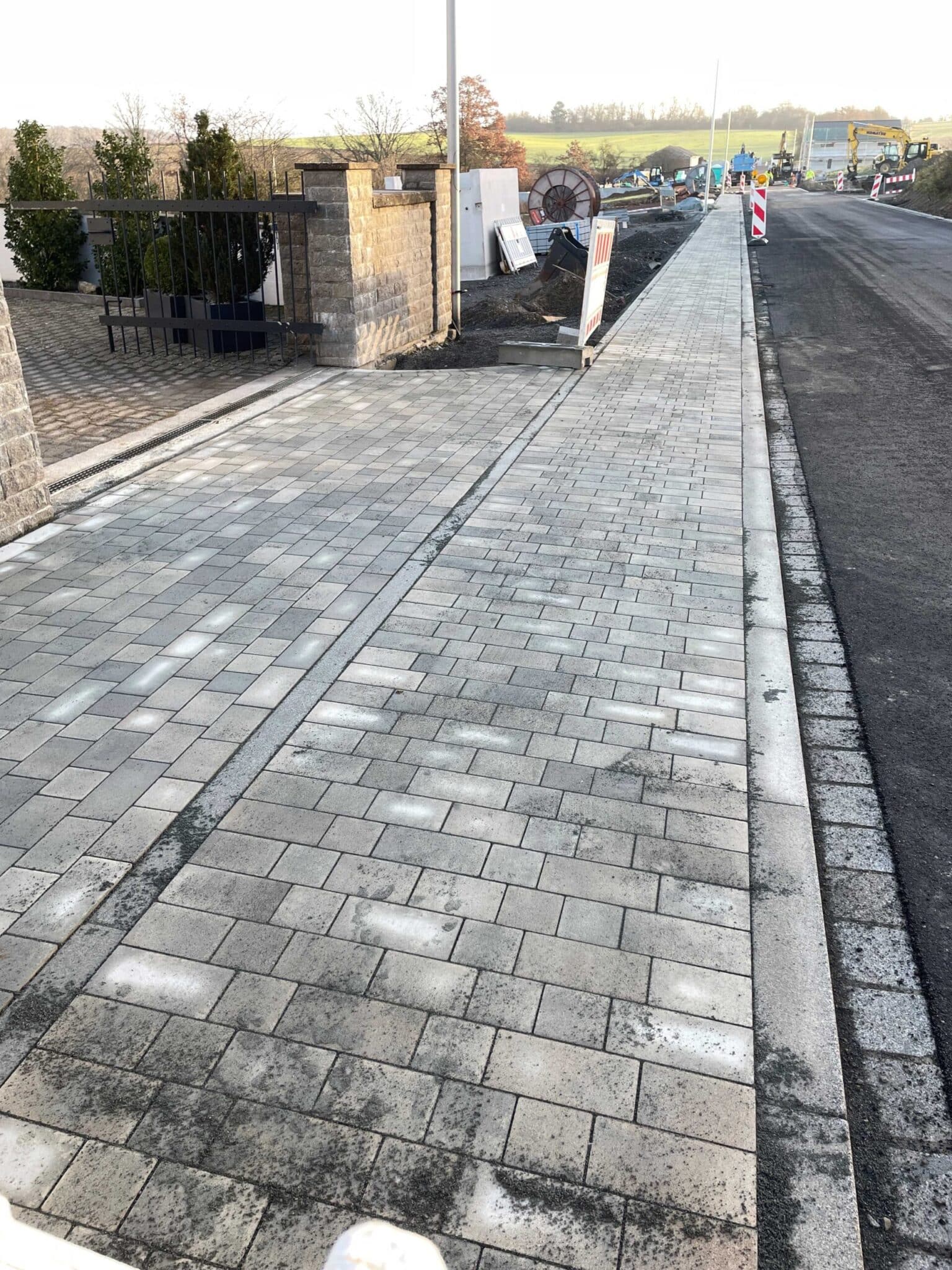 Die Fa. Pfeuffer ist die nächste Zeit mit der Fertigstellung der Randeinfassungen und des Schotterplanums in den Straßen- und Gehwegflächen beschäftigt. Weiterhin ist der Einbau der Drainasphaltschicht in den Gehwegen und das Gehwegpflaster geplant.