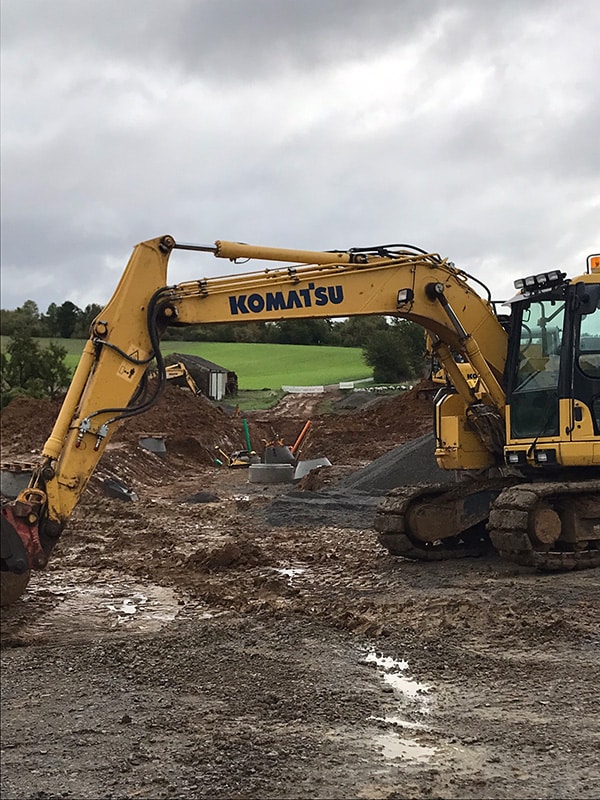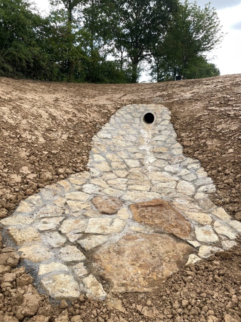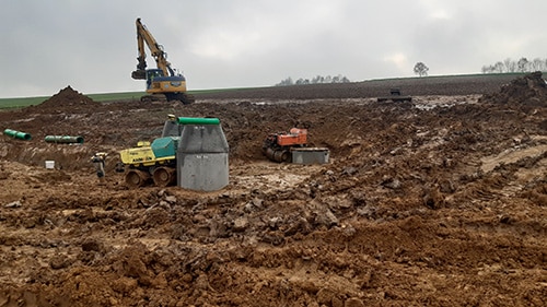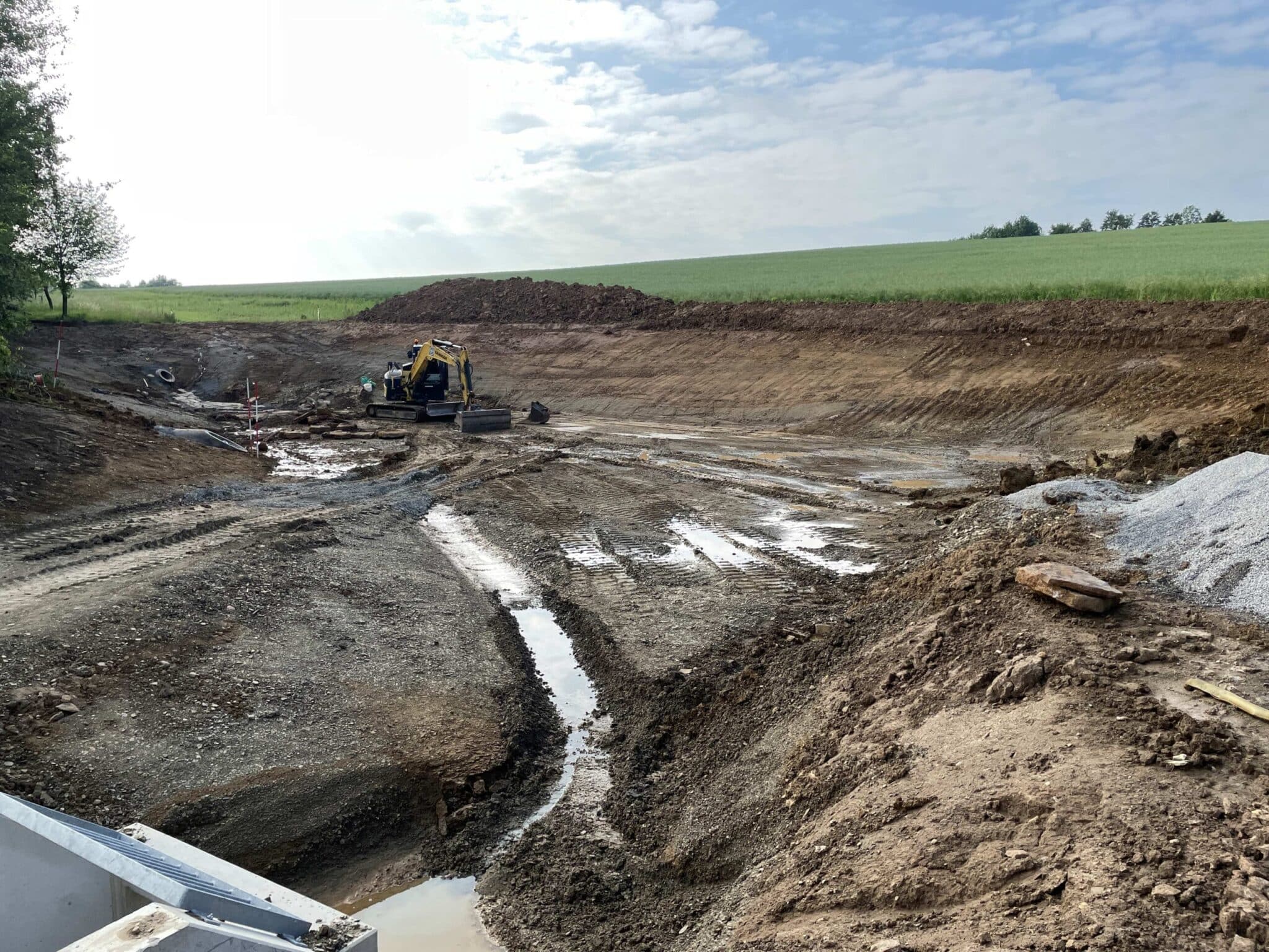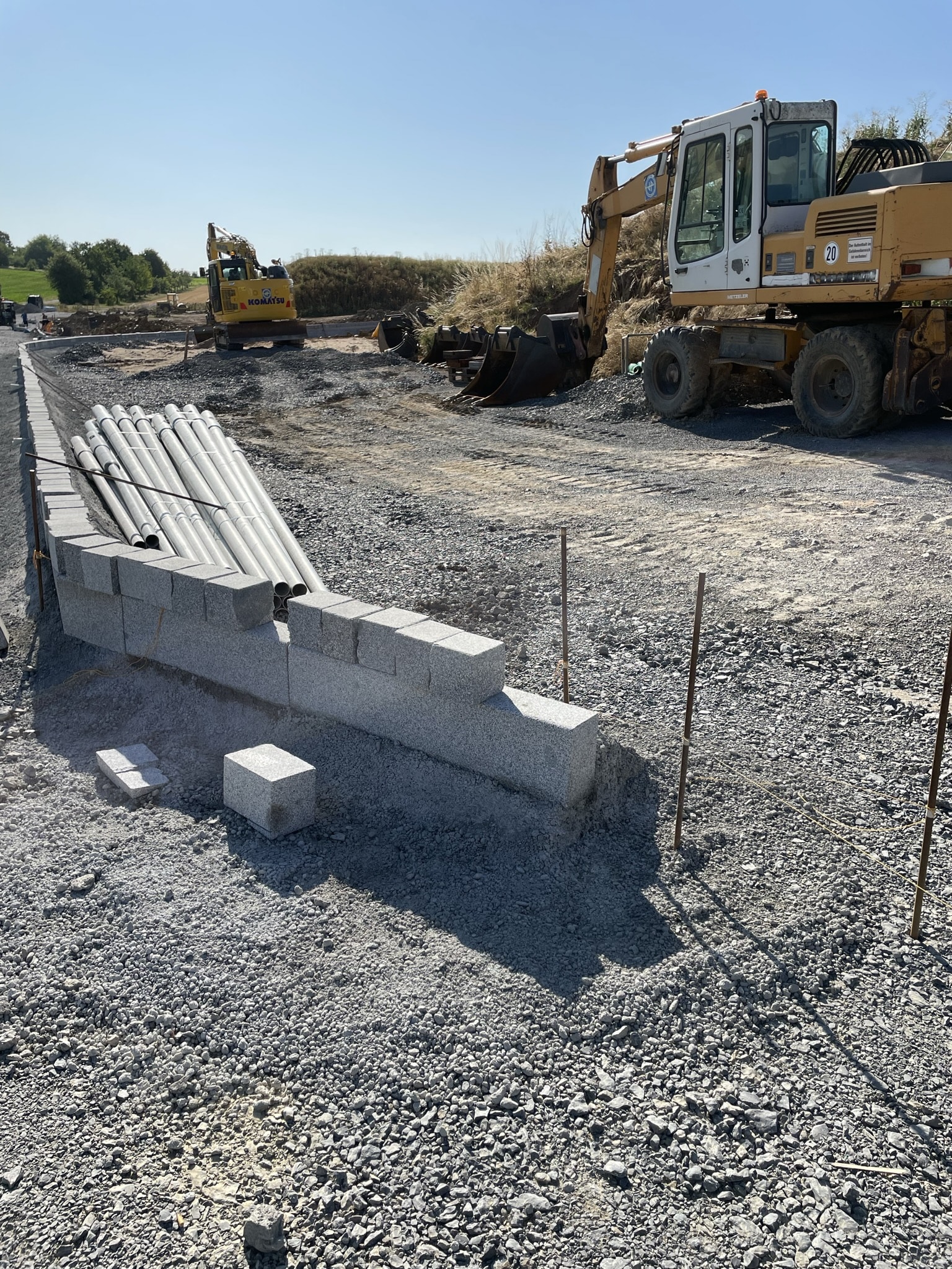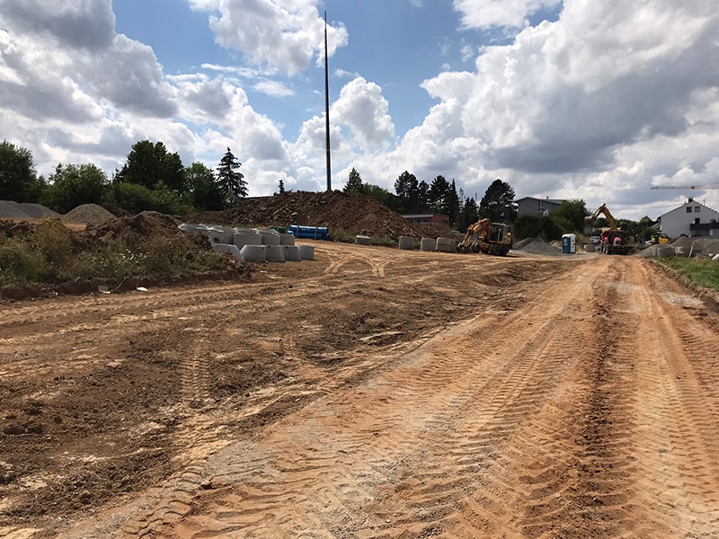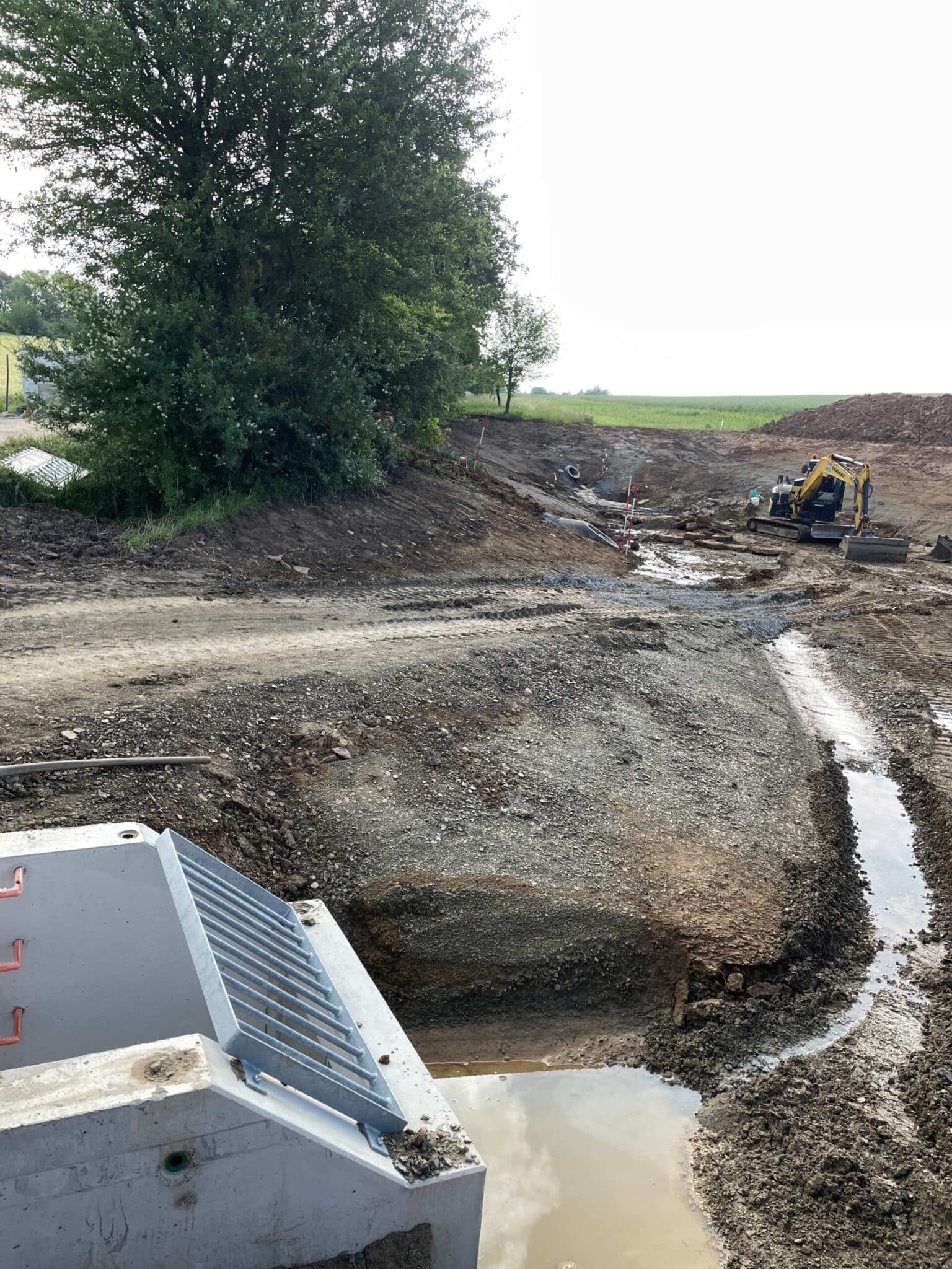 Momentan wird das Regenrückhaltebecken mit Anschluss der Außengebietsentwässerung gebaut.