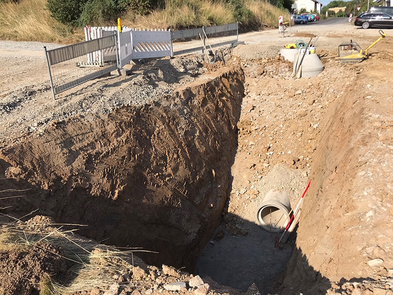 Momentan wird der neue Kanal zwischen Feuerwehr und Estenfelder Straße gelegt.