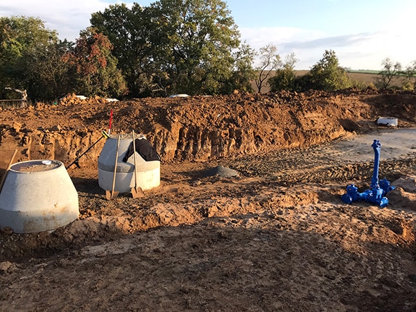 Das Regenrückhaltebecken wurde soweit fertiggestellt und mit den Arbeiten an der Wasserleitung „Am Baumland“ begonnen.