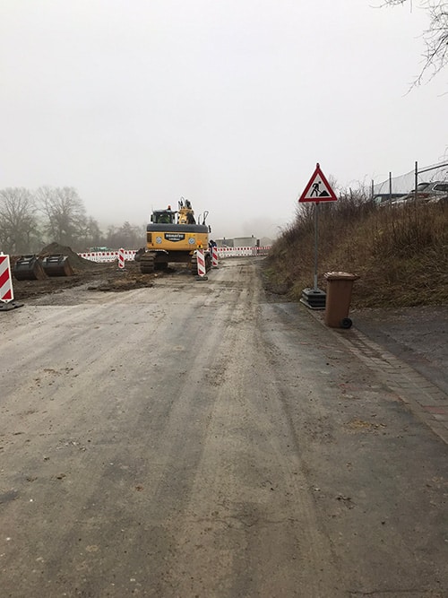 Die Leitungsverlegung im hinteren Teil der Straße „Zum Steinbruch“ ist abgeschlossen und es wird nun mit dem vorderen Teil begonnen.