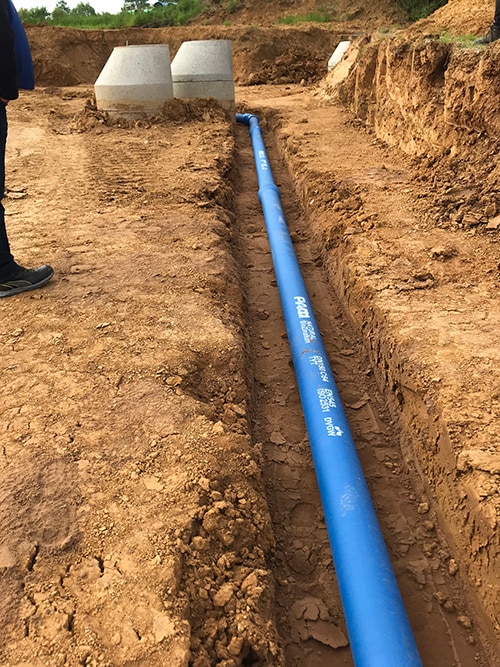 Für die Wasserleitung stehen jetzt noch an : Reinigung, Druckprobe, Hausanschlüsse.