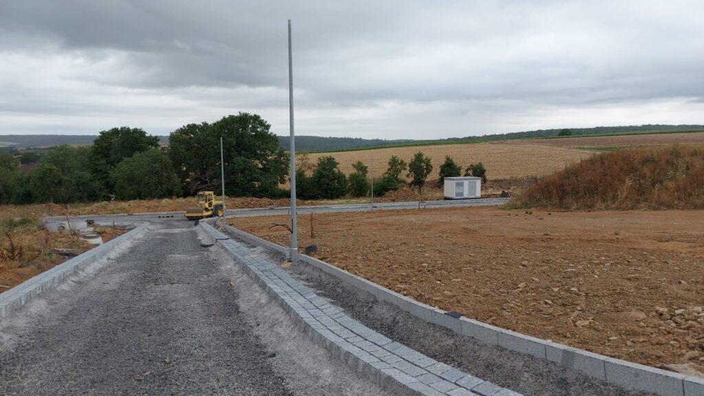 Als nächstes werden im Zuge des Straßenbaus noch die Hausanschlussleitungen verlegt, sowie die Verkabelung Strom und Beleuchtung durchgeführt.