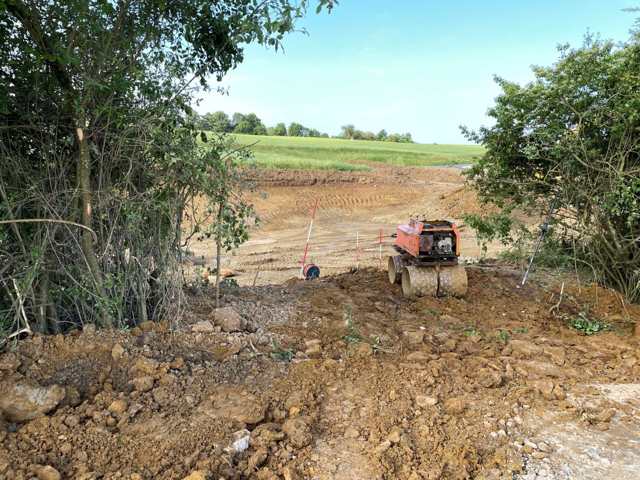 Es folgen in den nächsten Tagen noch die Verfüllarbeiten, sowie kleinere Arbeiten und Sicherung der Baumaßnahme, bevor die Baufirma dann von KW32 bis KW34 drei Wochen Betriebsurlaub macht.