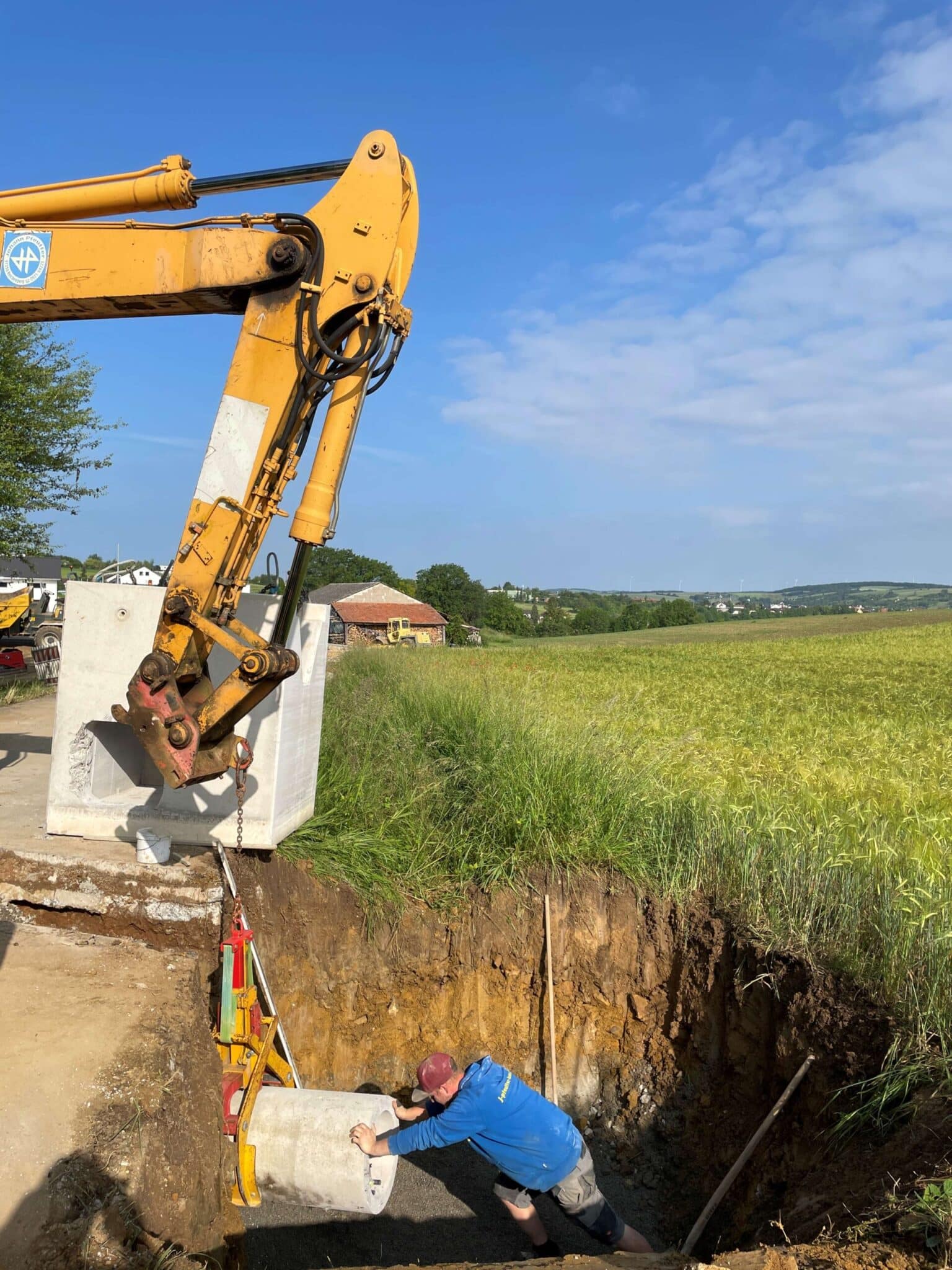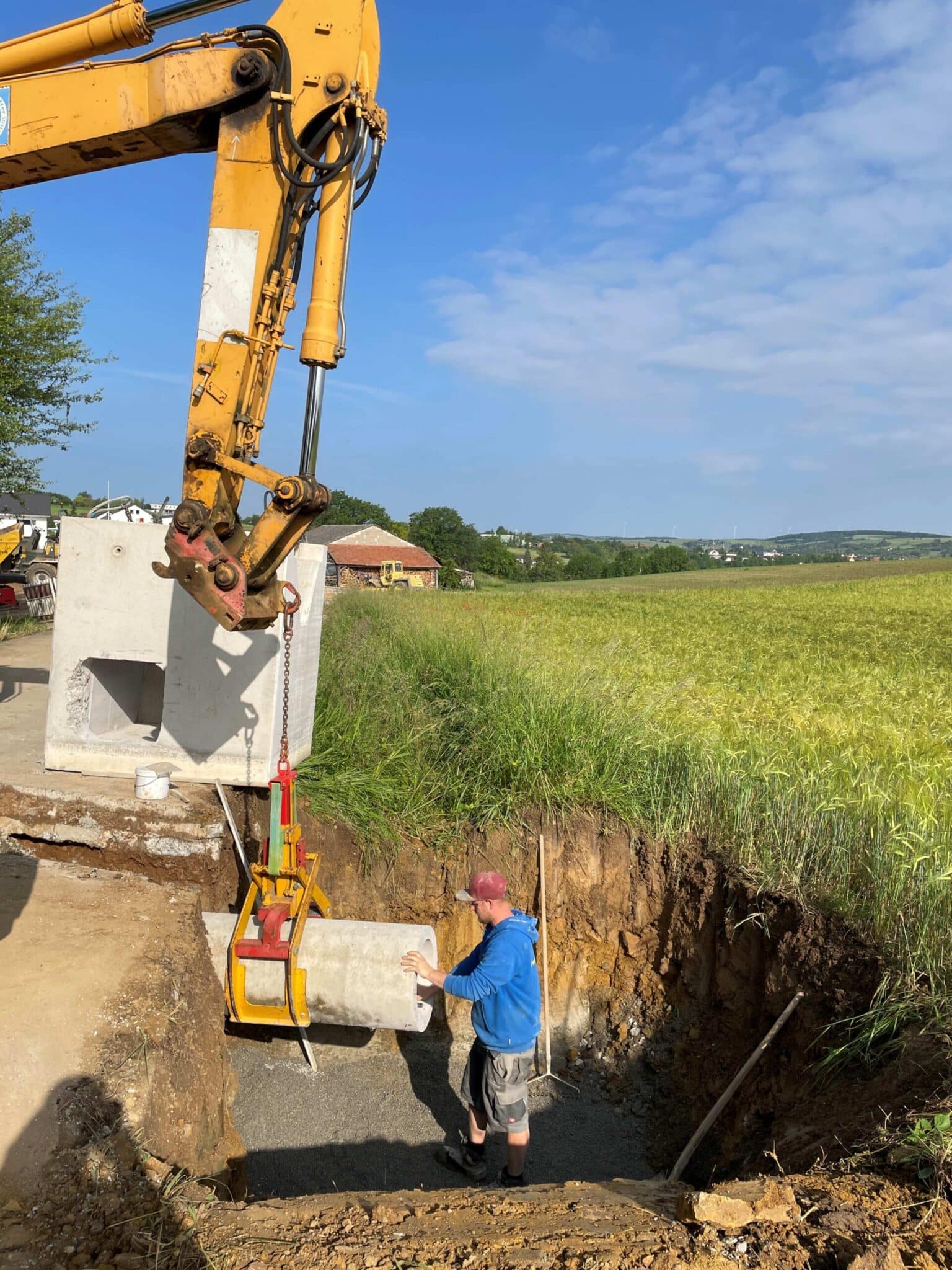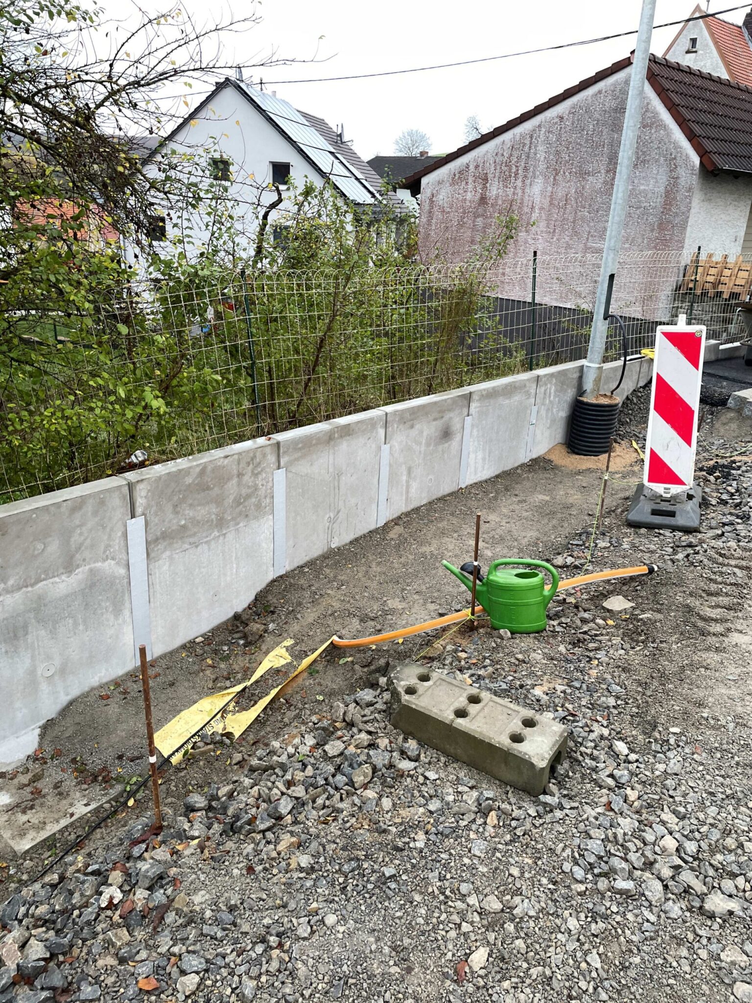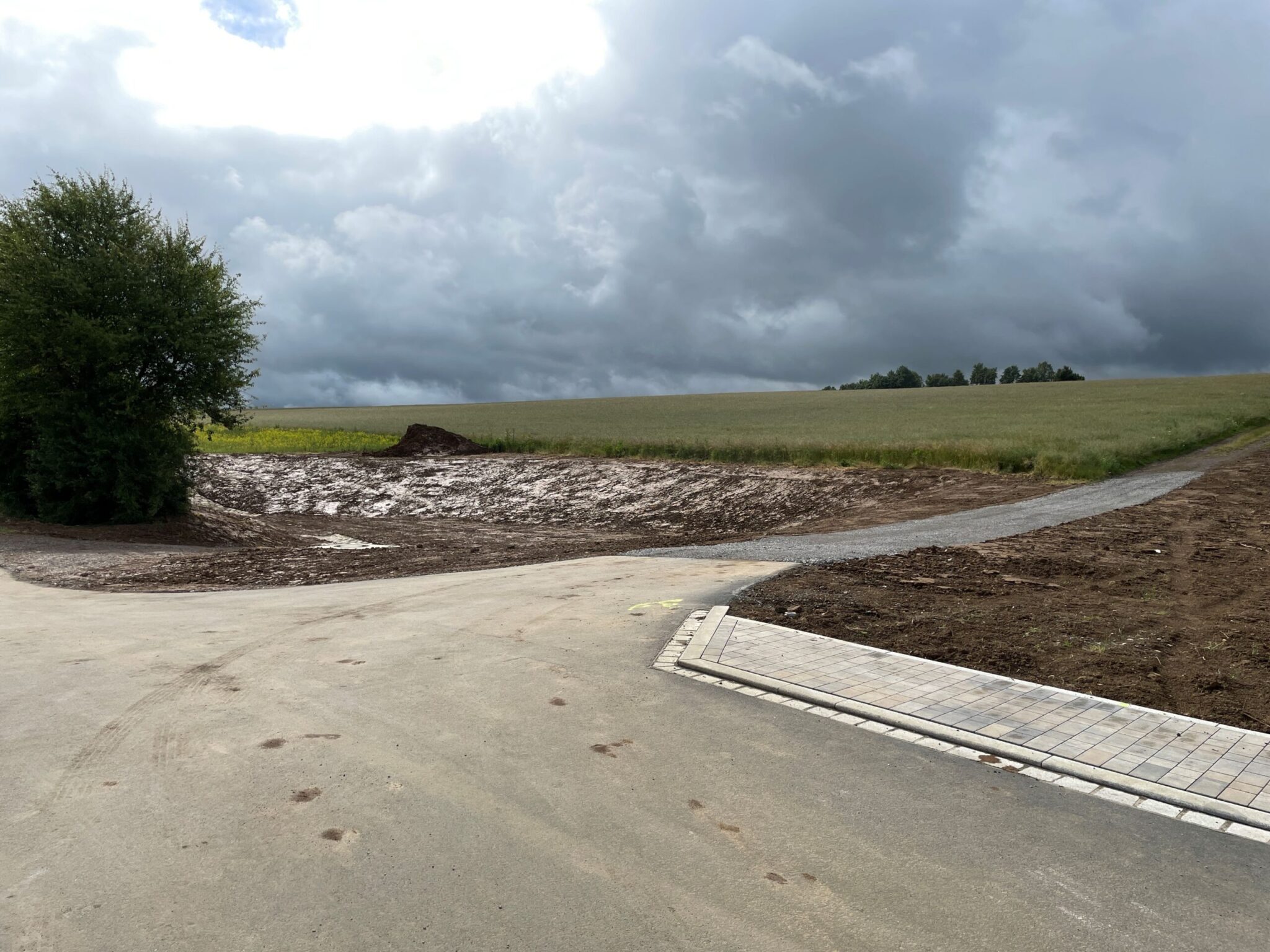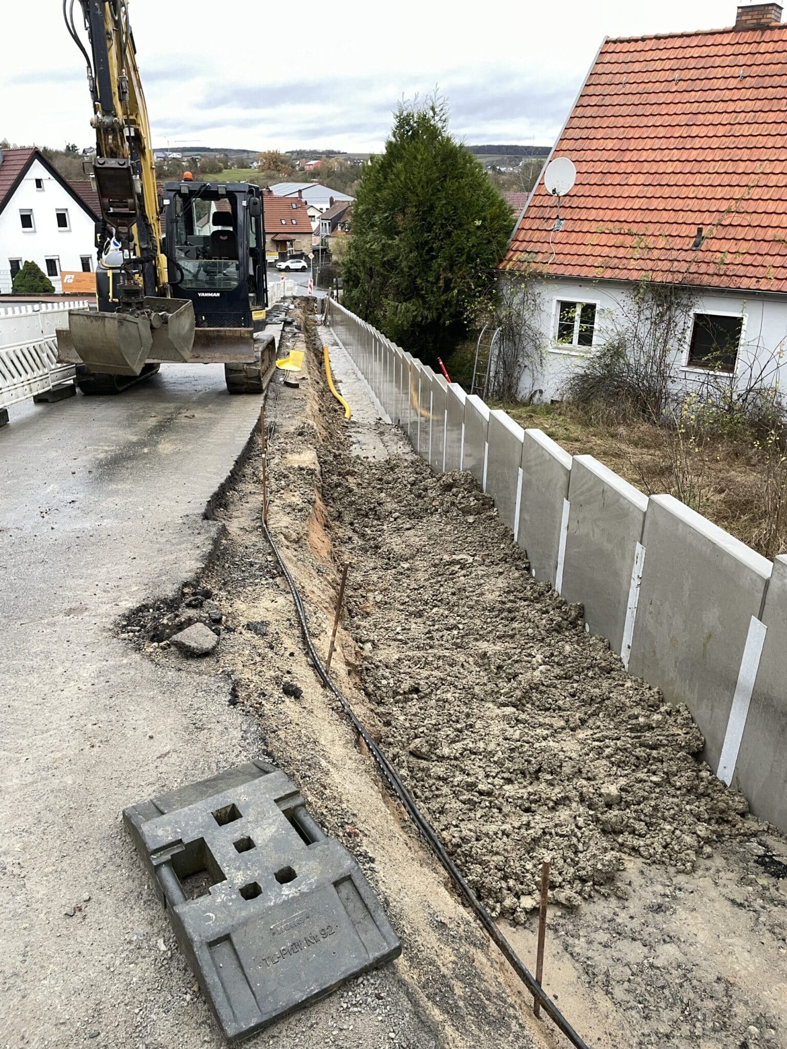 Die Fa. Pfeuffer stellt gerade das RRB fertig und beginnt noch diese Woche mit der Wasserleitung in der Straße „Am Baumland“.