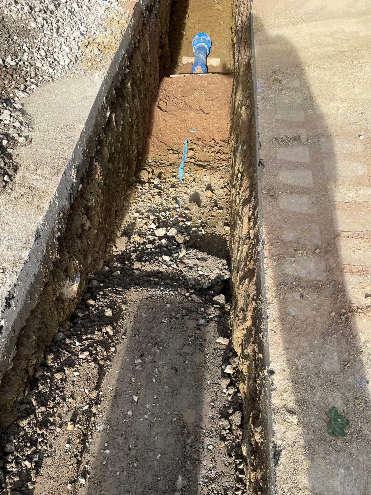 Dies bedeutet, dass die Leitungen für Schmutzwasser, Regenwasser, Wasser, etc. nacheinander in eigenen Gräben verlegt werden.