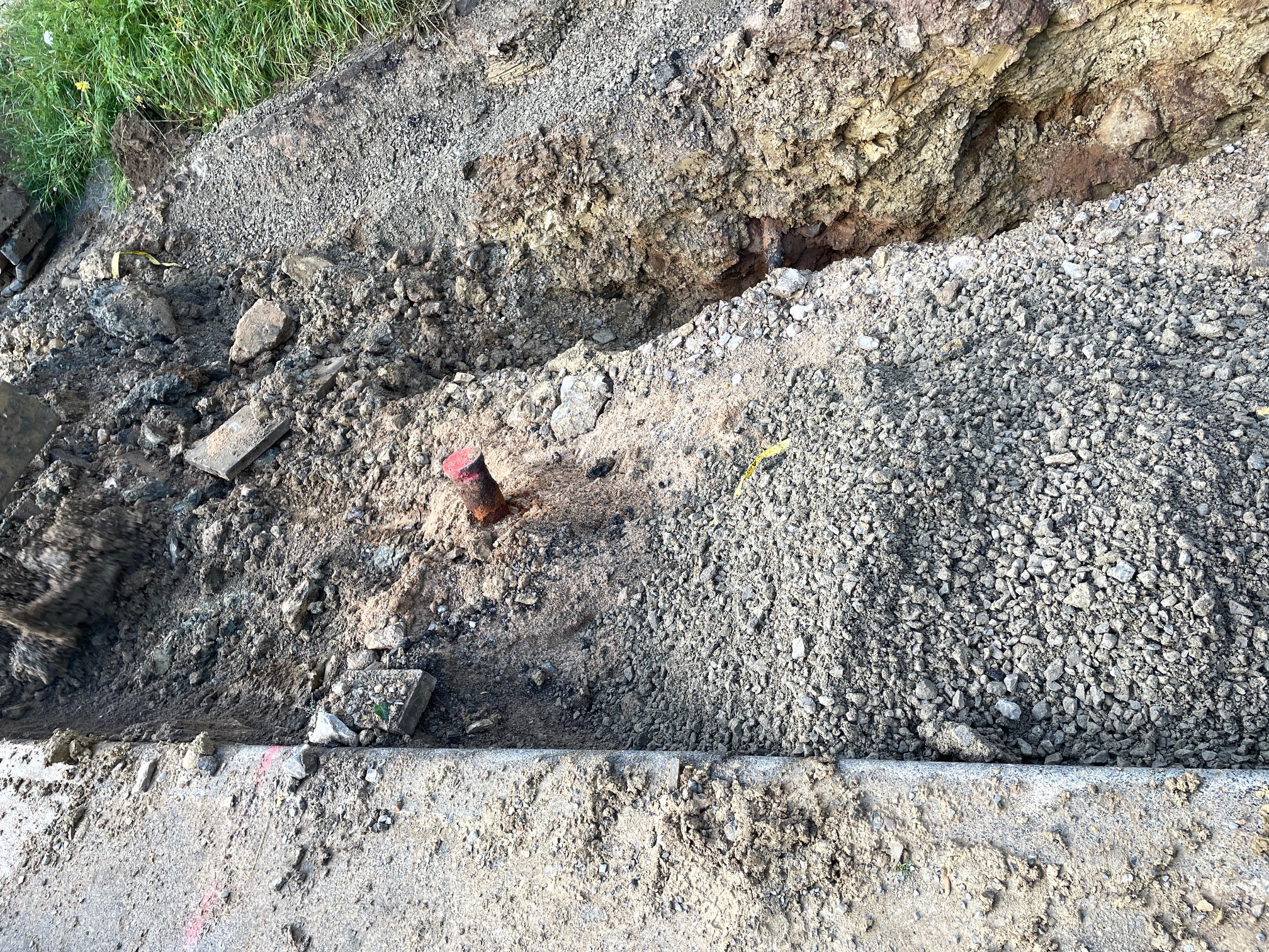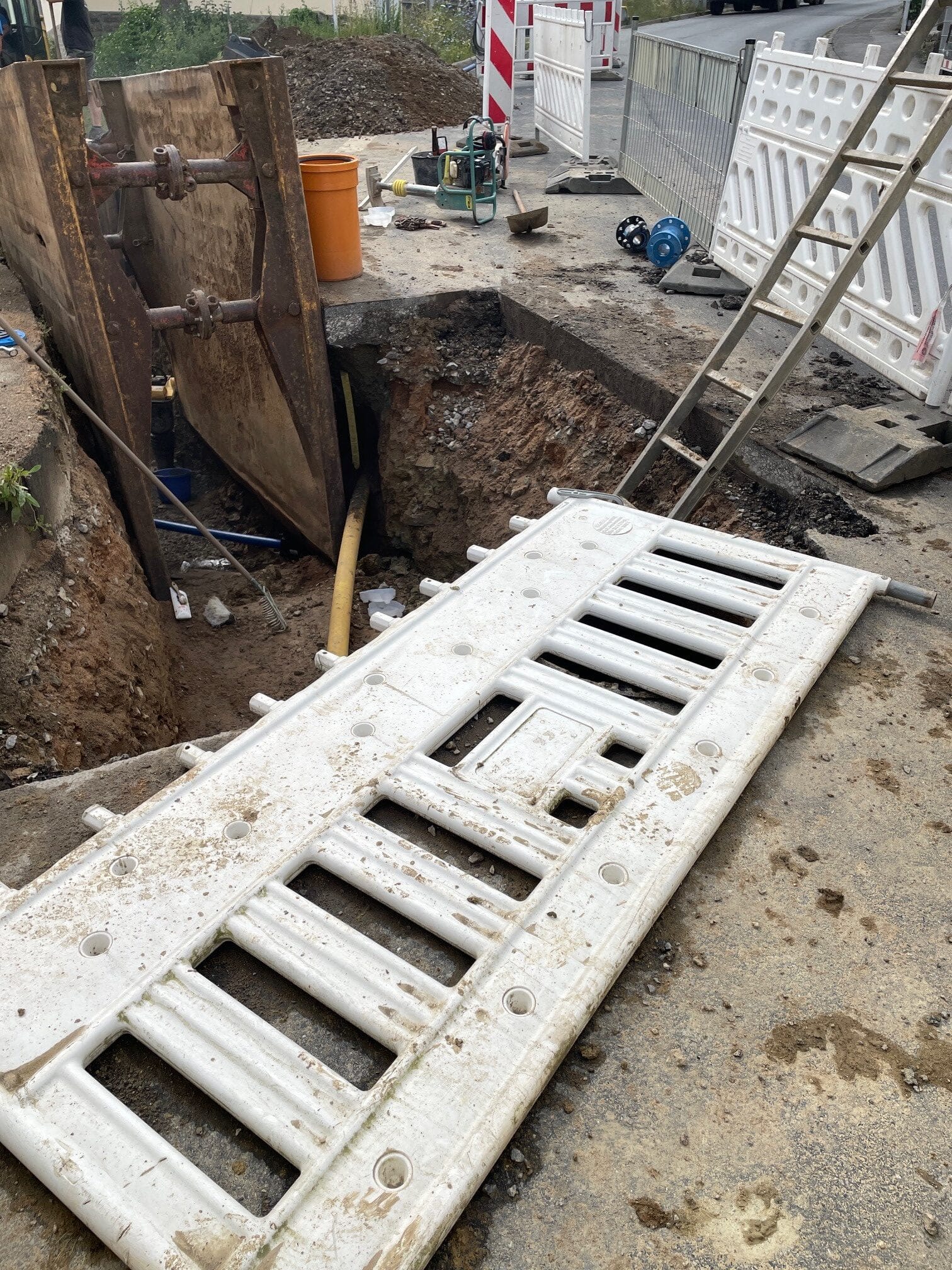 Inzwischen wurde die Kanalleitung auf Höhe der Zufahrt zum AD Hartmann neu verlegt.