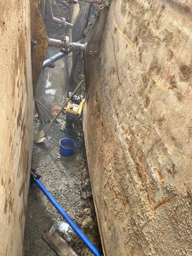 Die Arbeiten werden kommende Woche abgeschlossen und dann geht es mit der Wasserleitung in der Straße „Am Baumland“ weiter.