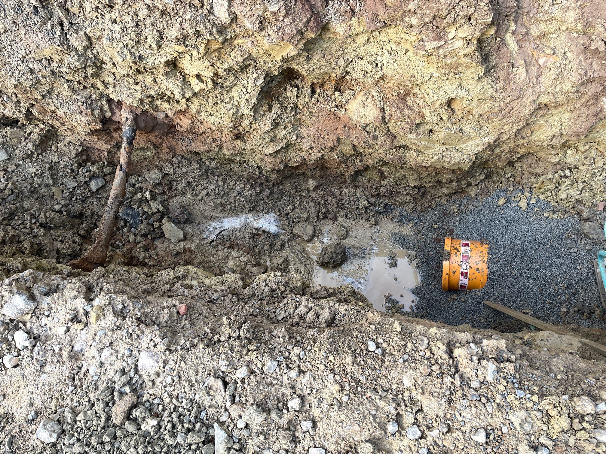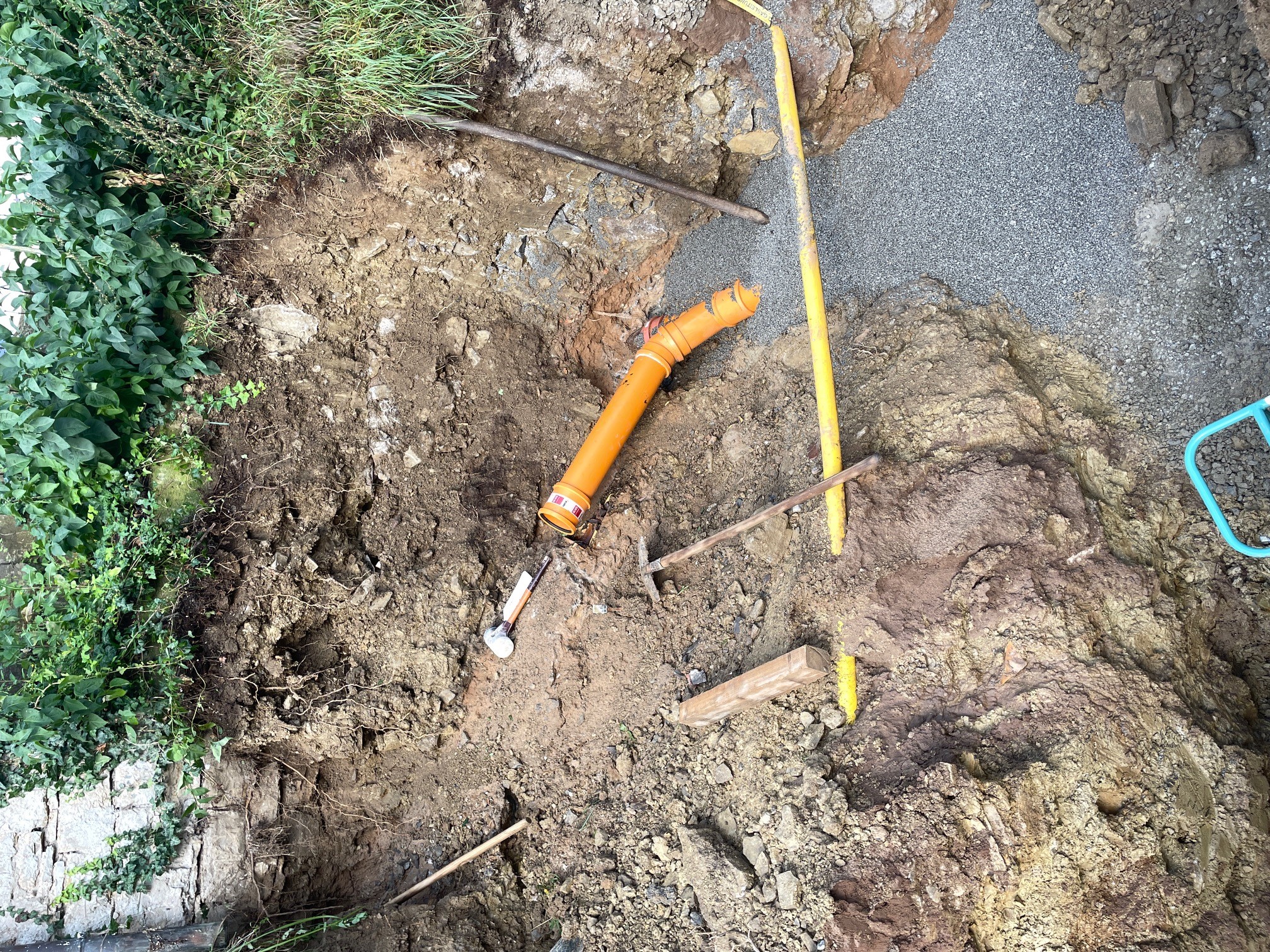 • Die Arbeiten an der Wasser-Hauptleitung und der Wasser-Hausanschlüsse sind soweit abgeschlossen – jetzt warten wir auf das Analyseergebnis um dann den Umschluss ans gemeindliche Netz vornehmen zu können
