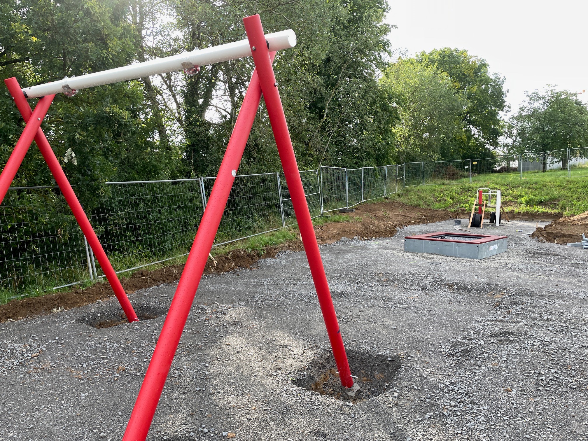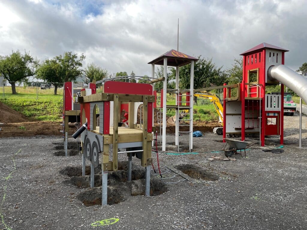 Parallel dazu werden im Teilbereich neuer Spielplatz gerade die neuen Spielgeräte montiert.