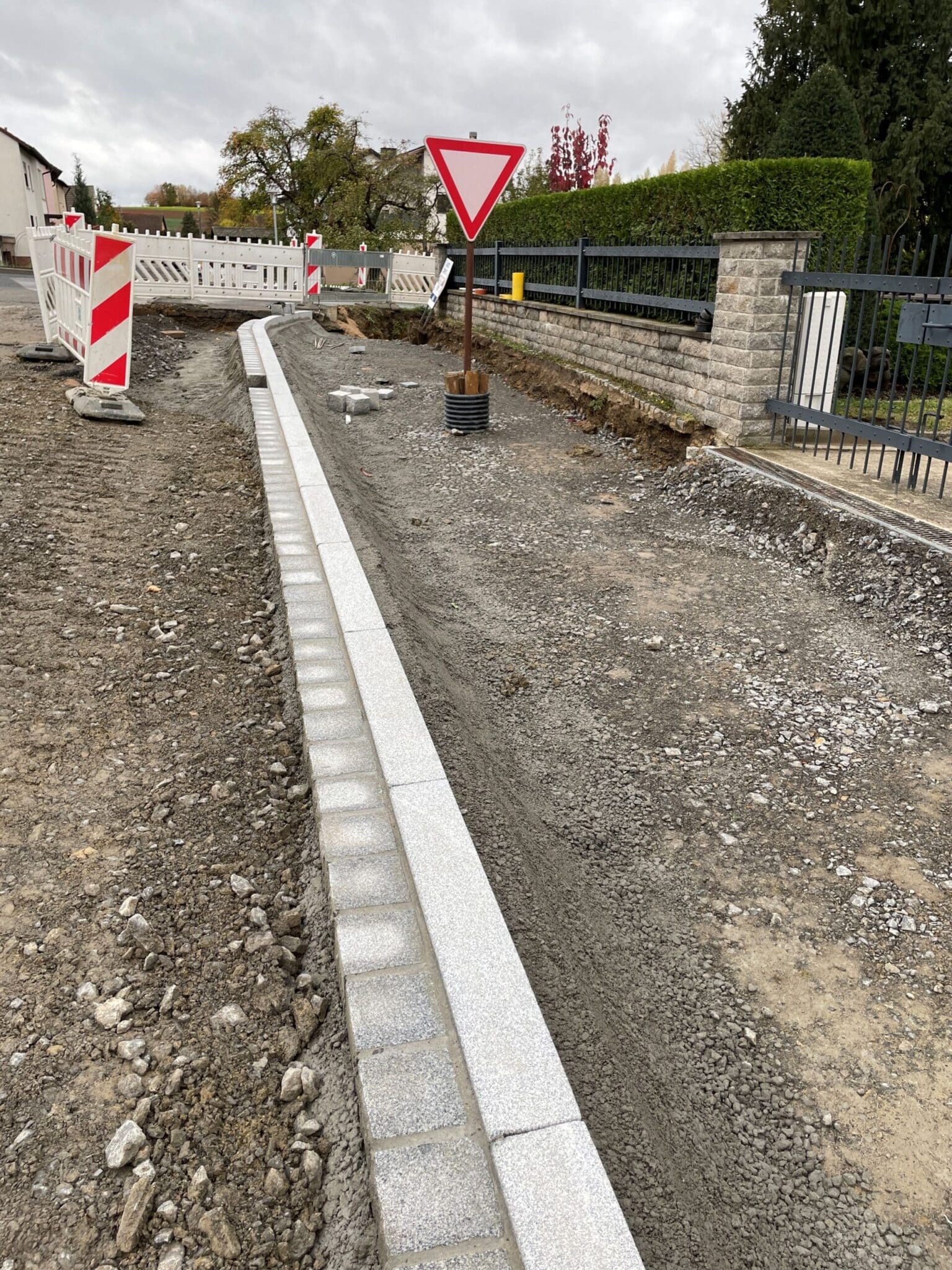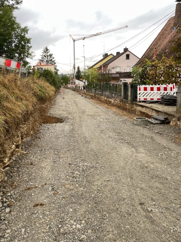 Es wird weiterhin im „vorderen Bereich“ von der Einmündung Estenfelder Straße bis auf Höhe Zufahrt Fa. Hartmann gearbeitet – im Randbereich muss noch ein Kanal verlegt werden, der Straßenbau und der Gehweg soll noch in diesem Jahr hergestellt werden.