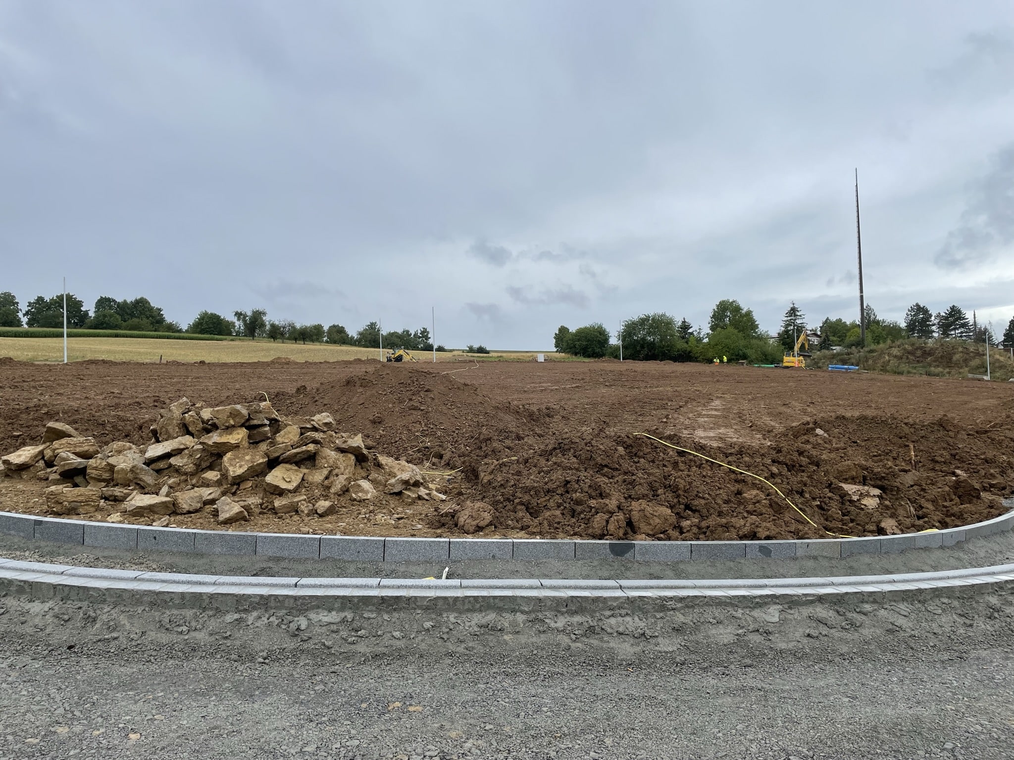 Im Baugebiet „Bickelsgraben“ wurde jetzt nach der Sommerpause der Aushub für die Regenrückhaltung unter dem Spielplatz hergestellt.