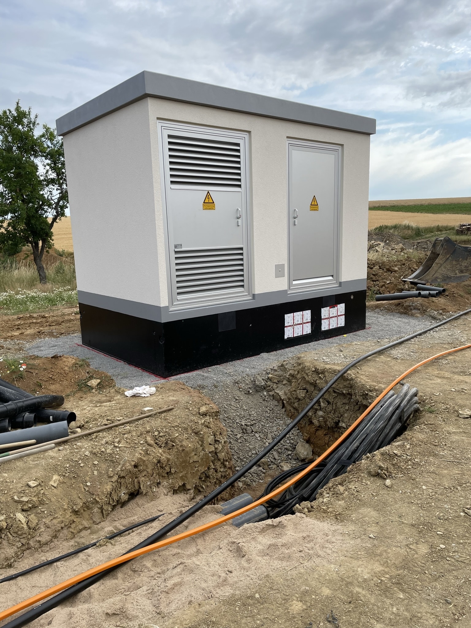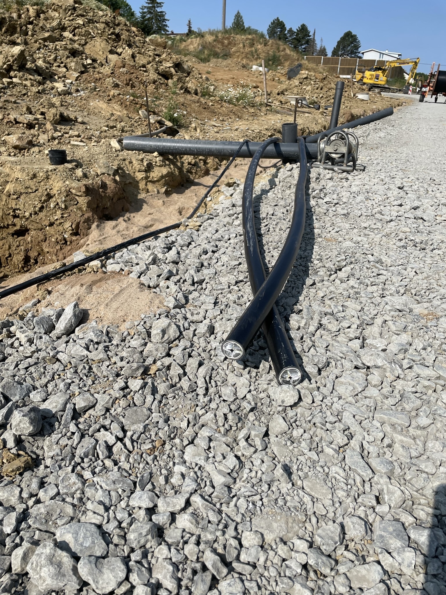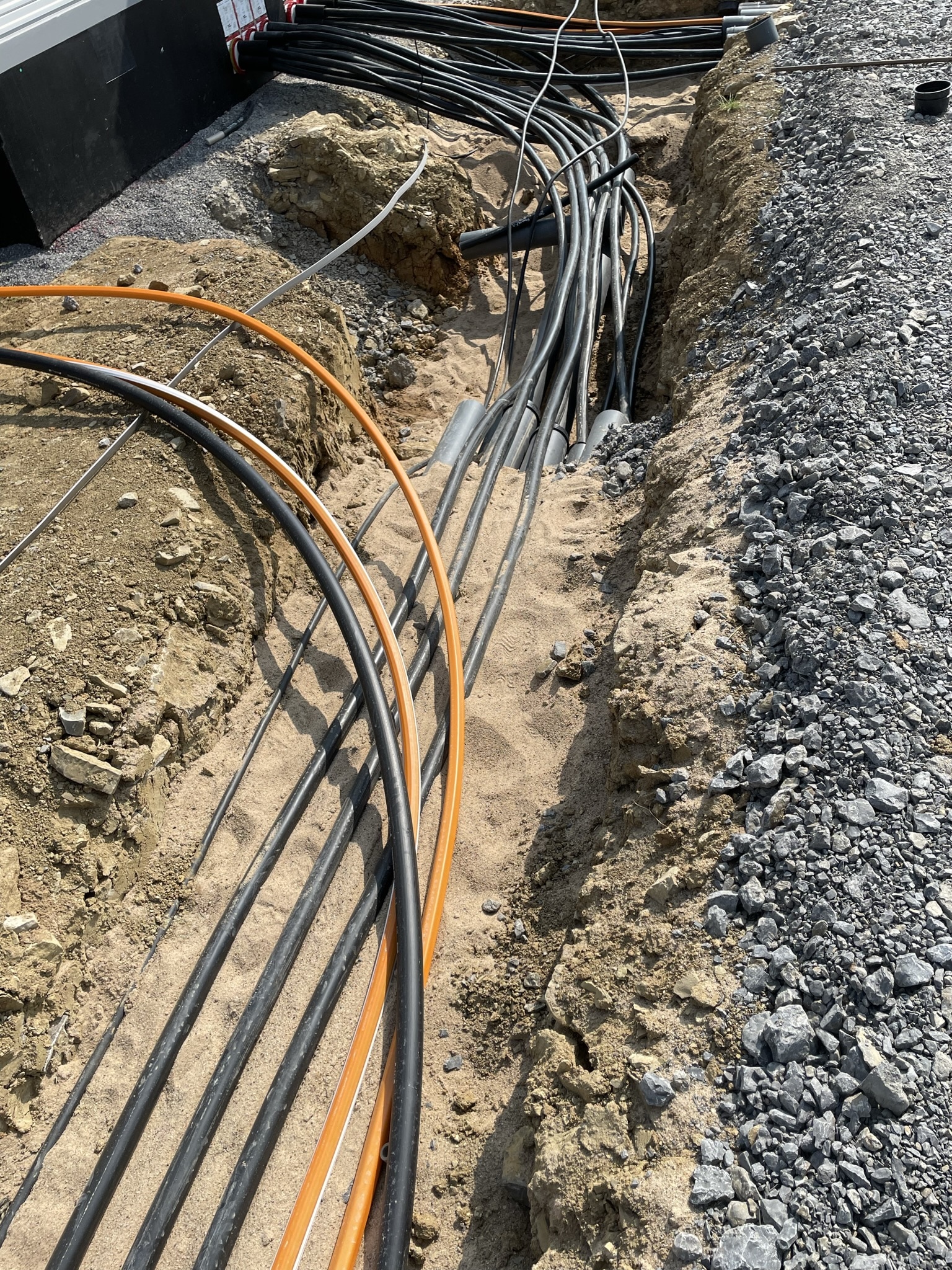 Zur Zeit erfolgen die Kabelarbeiten für Strom, Beleuchtung und Glasfaser, zudem wurde die Trafostation gestellt.