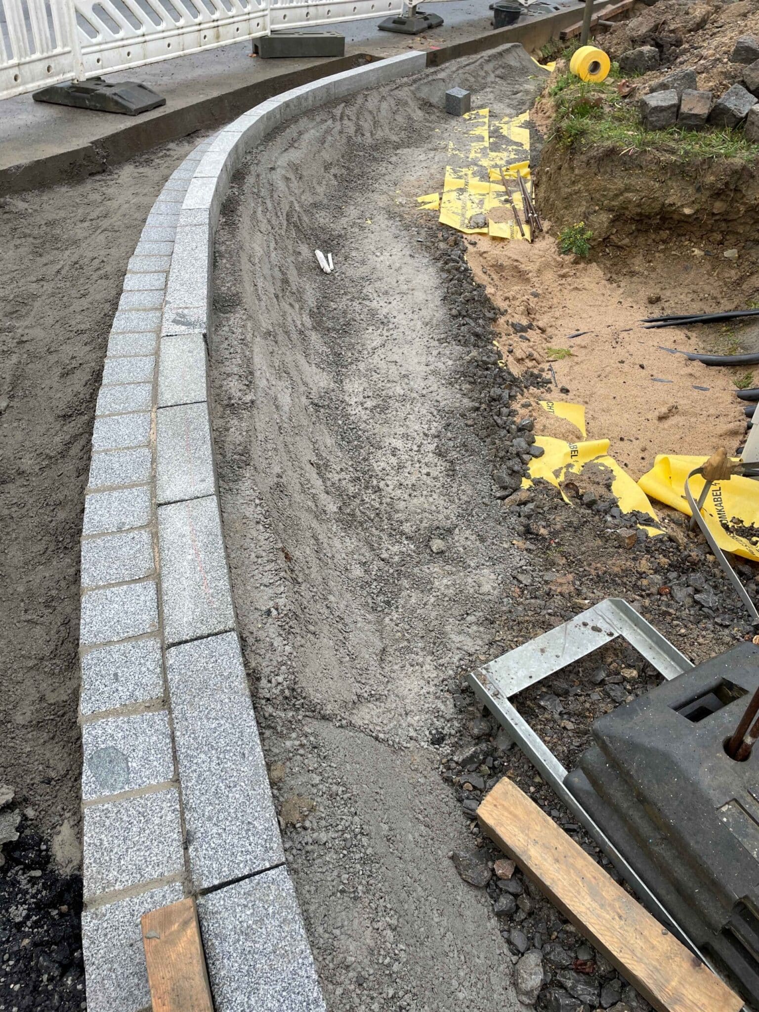 Aktuell werden noch die Randeinfassungen hergestellt, als nächstes sollen dann der Drainasphalt und das Pflaster in den Gehwegen eingebaut, sowie Klein- und Restarbeiten erledigt werden.