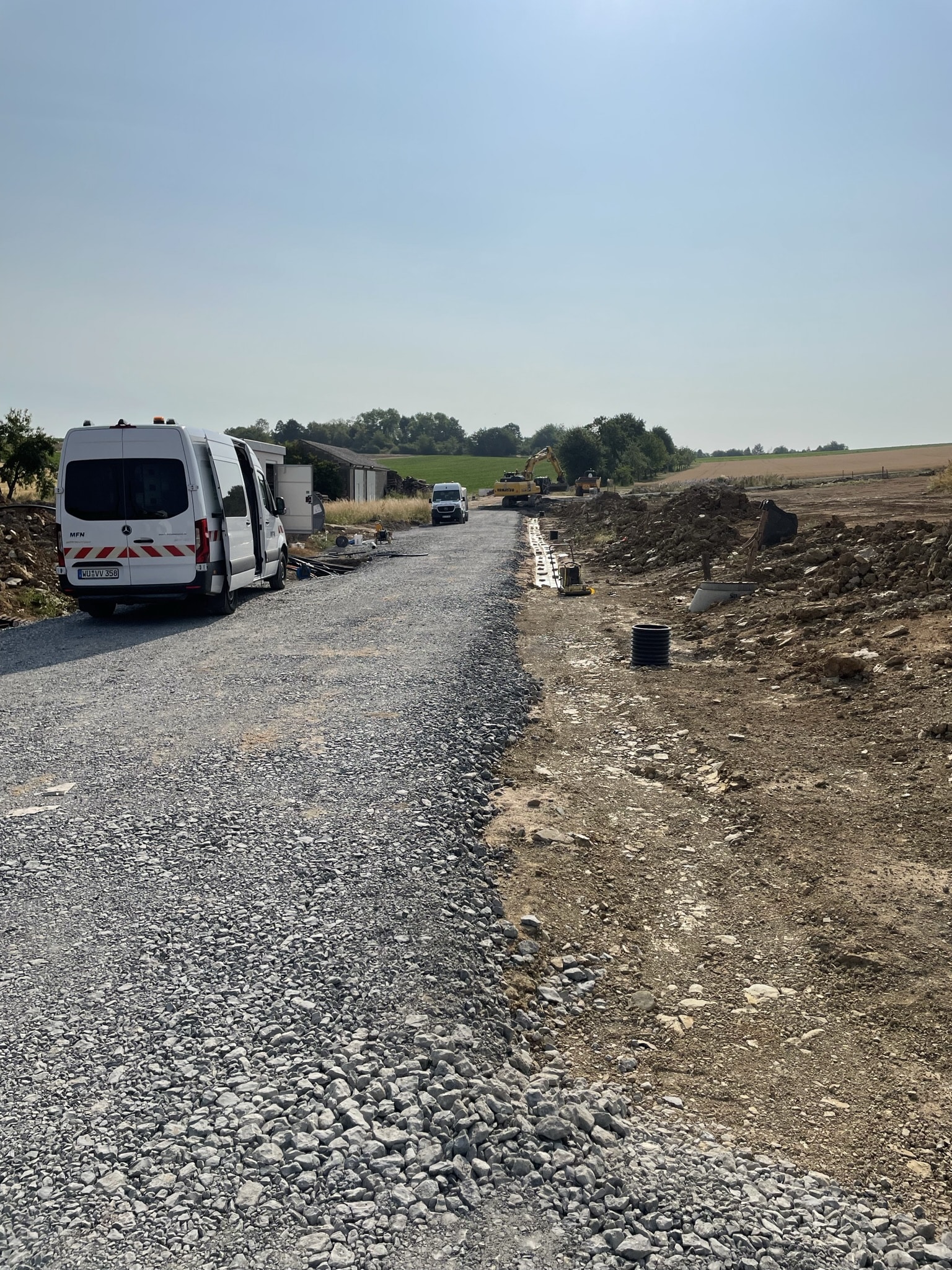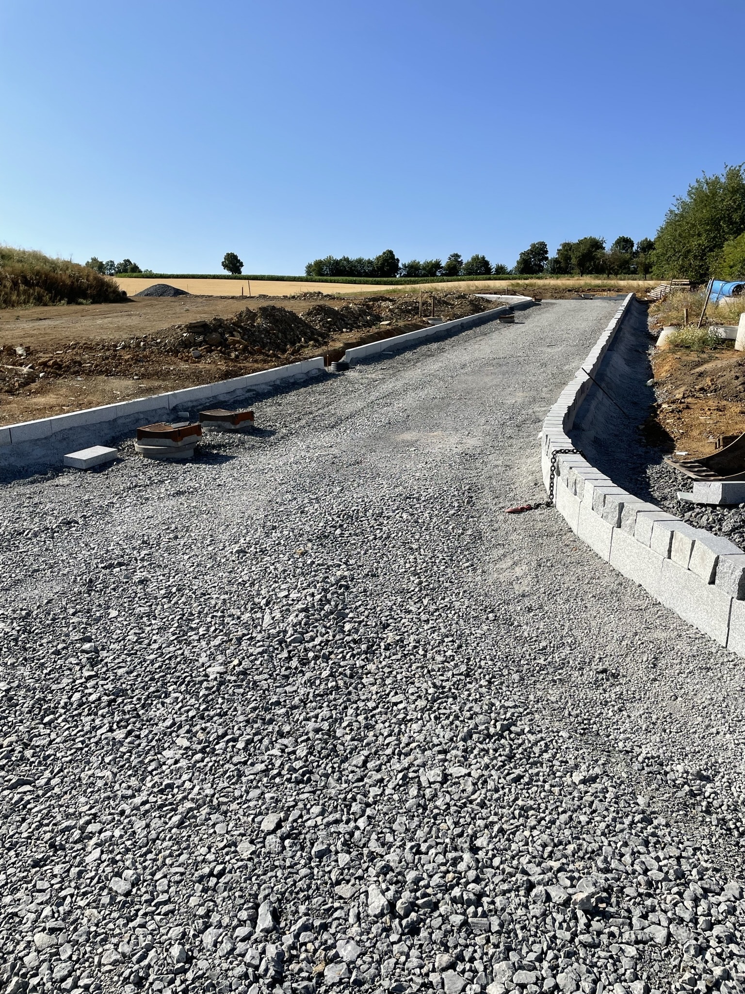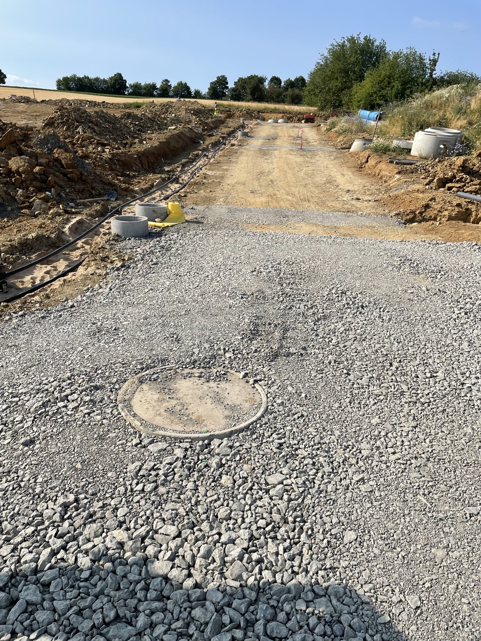 Parallel wird bereits die Schottertragschicht eingebaut, so dass in den nächsten Tagen mit den Randeinfassungen begonnen werden kann.