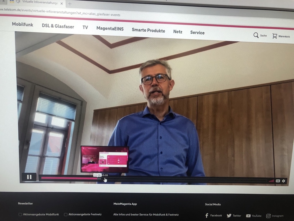 Am 11.5.2022 fand um 19 Uhr eine digitale Bürgerinfoveranstaltung statt. Dabei wurde erläutert, wie man vom Glasfaserausbau der Telekom profitiert und was zu tun ist, um sich den kostenfreien Glasfaseranschluss zu sichern.