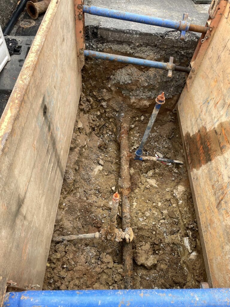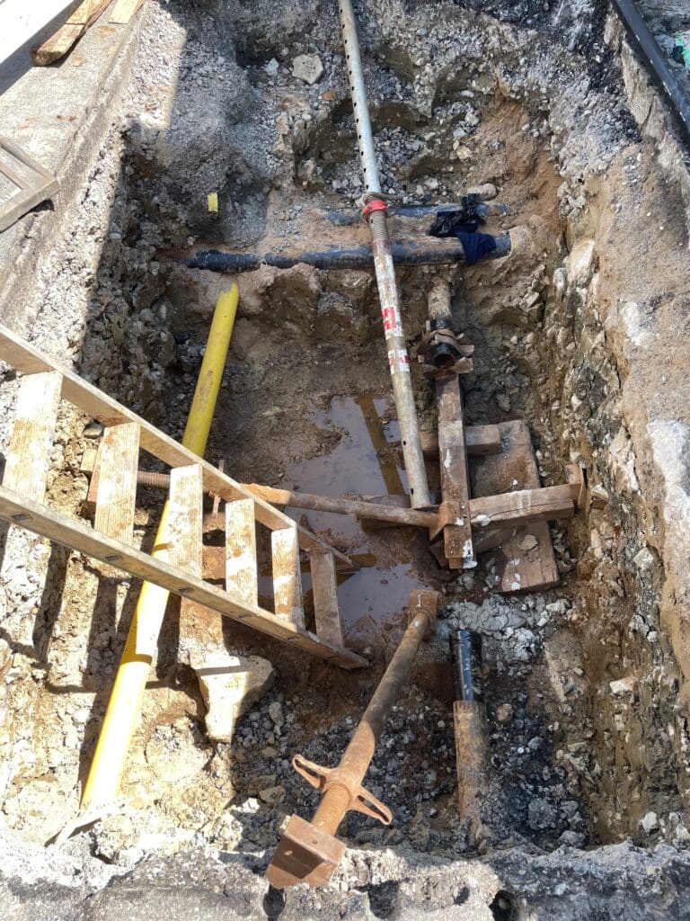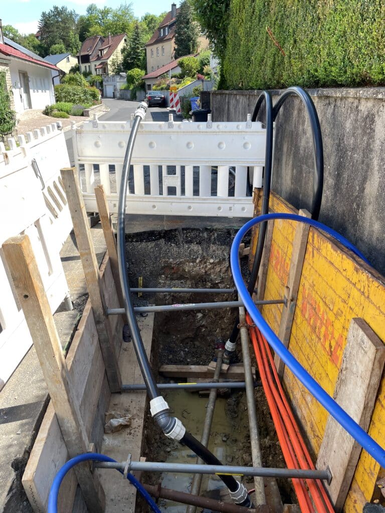 Parallel wird im Bauabschnitt 2 die Ersatzversorgung aufgebaut und die erforderlichen Gruben hergestellt.
