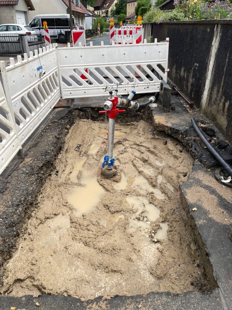 Wenn diese entsprechend ausfällt, beginnen ab dem 11.07. die weiteren Arbeiten wie Herstellen der Gruben, umbinden der Häuser etc., um dann ab dem 15.07. mit der Sanierung der Wasserleitung zu beginnen.