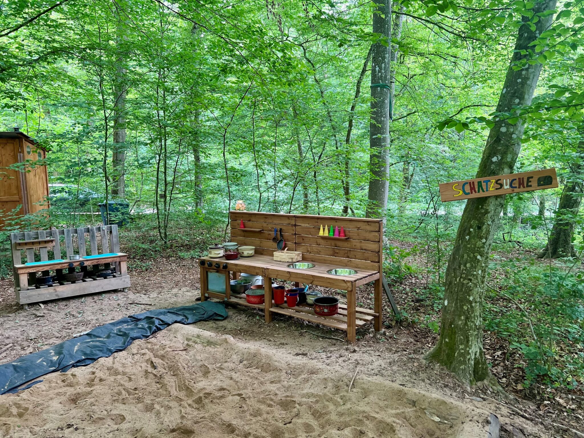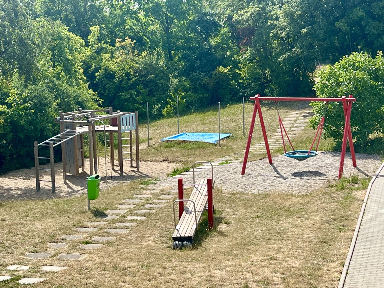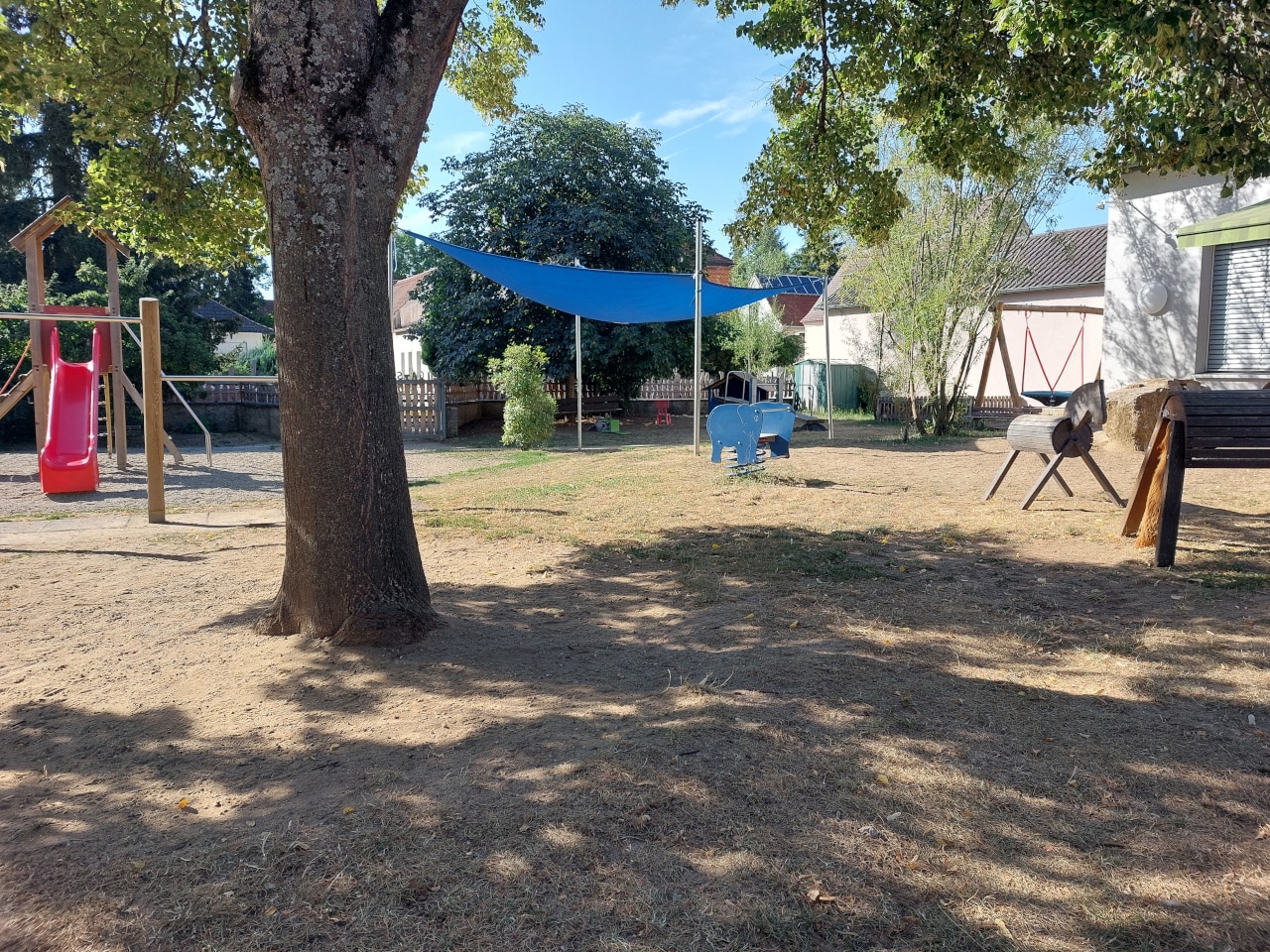 Hinter dem Gebäude steht den Kindern ein schöner Außenspielbereich zur Verfügung, der zum Toben, Buddeln und Klettern einlädt.