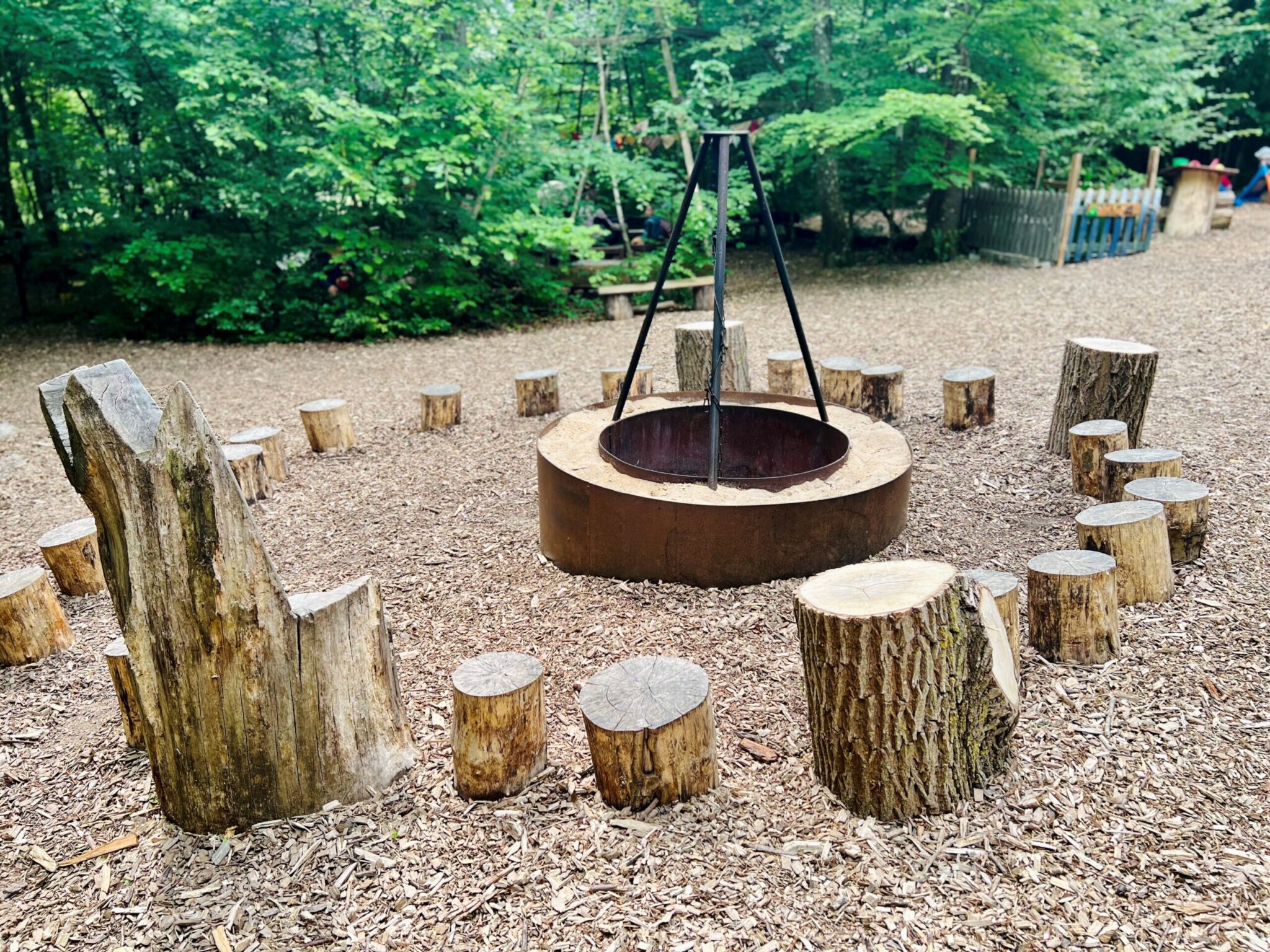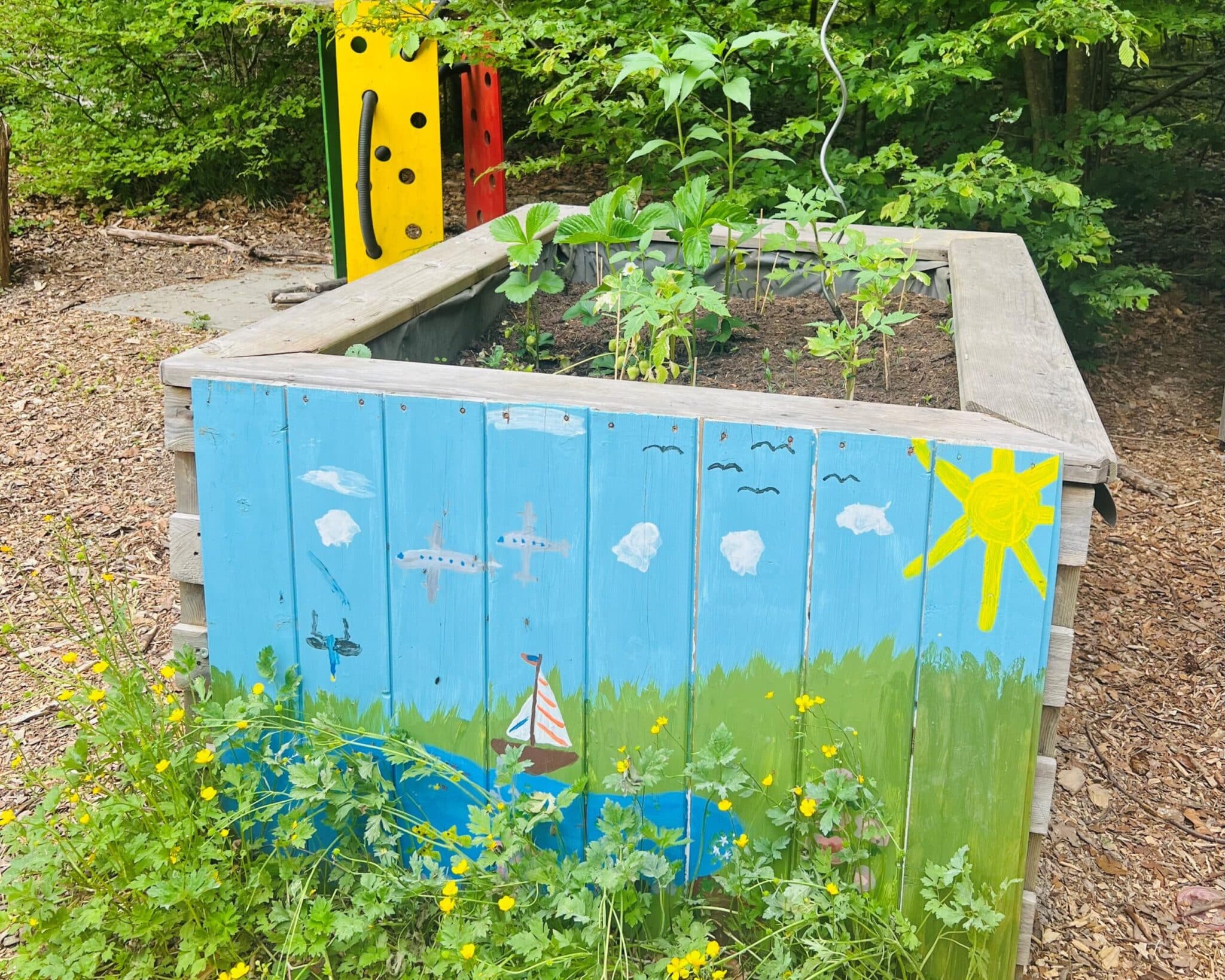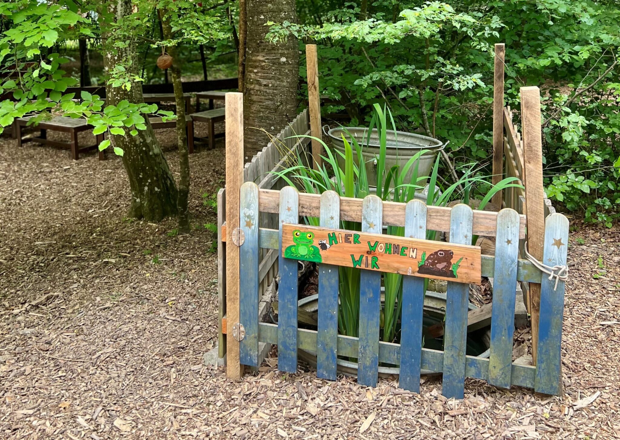 Durch den abgeschlossenen Zugang zum Bach haben die Kinder im Sommer die Möglichkeit, gemeinsam mit dem Personal, Wasser zu holen und damit zu spielen.