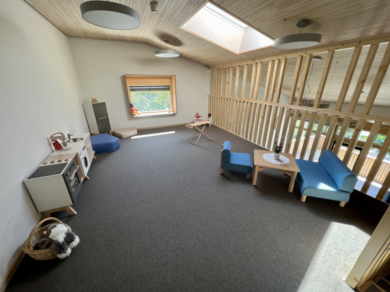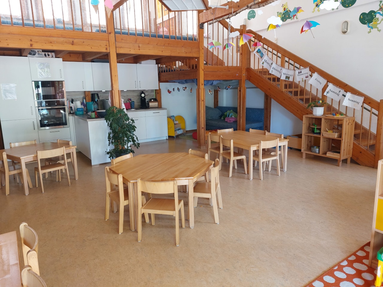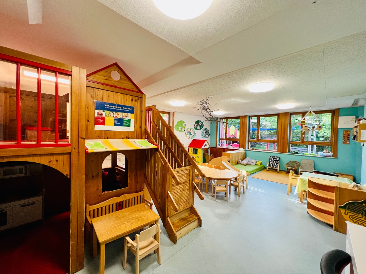 Im Erdgeschoss befindet sich zudem noch das Büro der Leitung sowie ein Elternraum, der während der ersten Trennungsversuche in der Eingewöhnungsphase sowie für Elterngespräche genutzt wird.