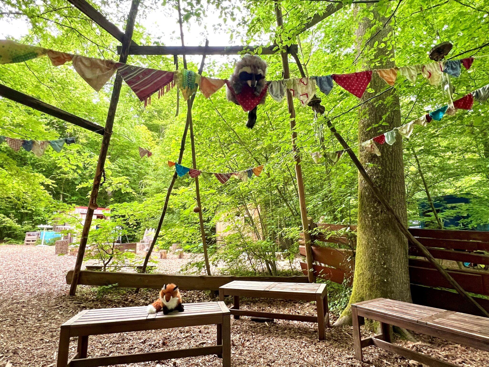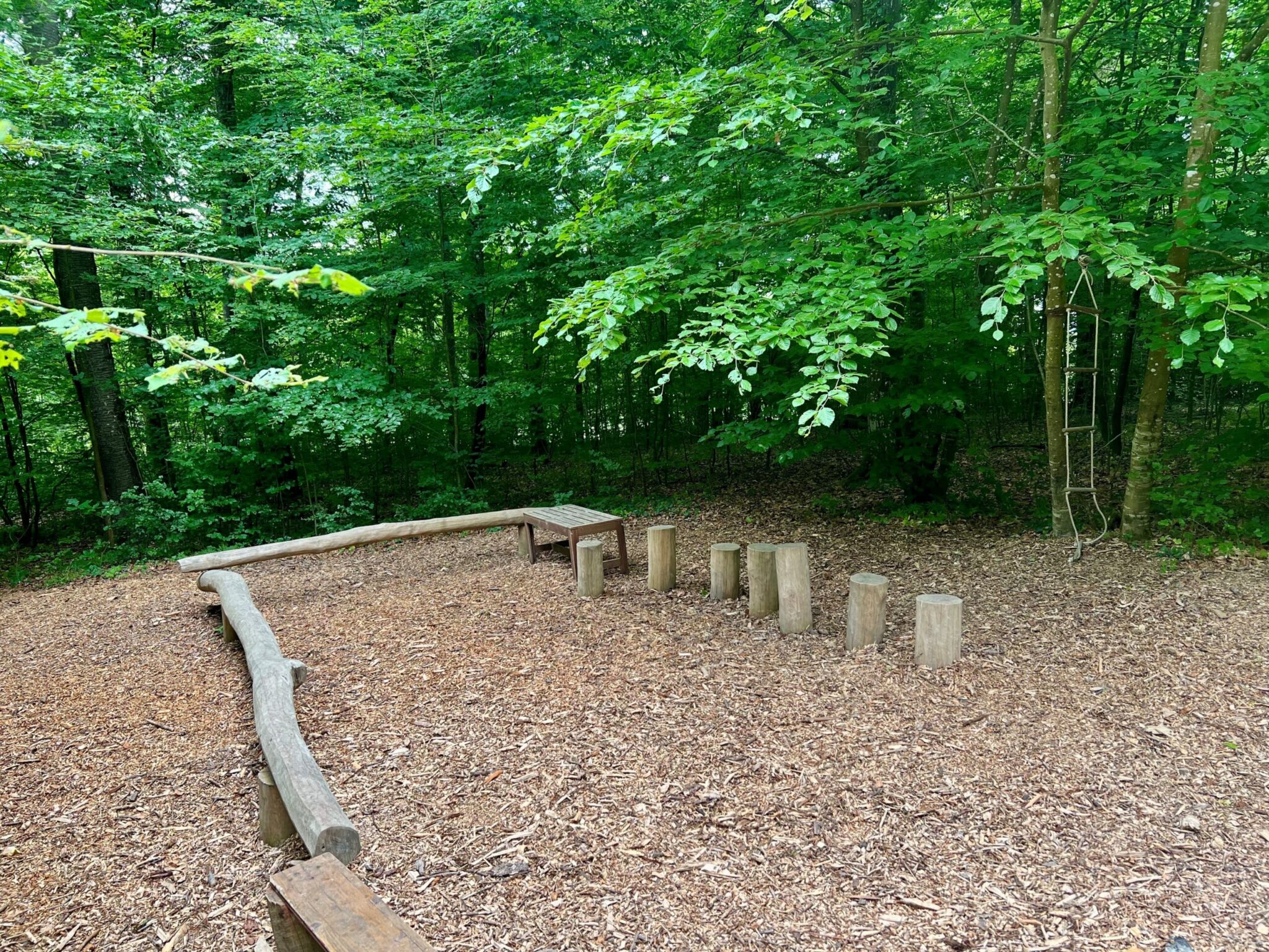 eine Balancierstange, ein Klettergerüst und eine Tischtennisplatte. Hüpfseile, Ballspiele, Federballspiele, Frisbee und Gummitwist stehen den Kindern ebenfalls zur Verfügung.