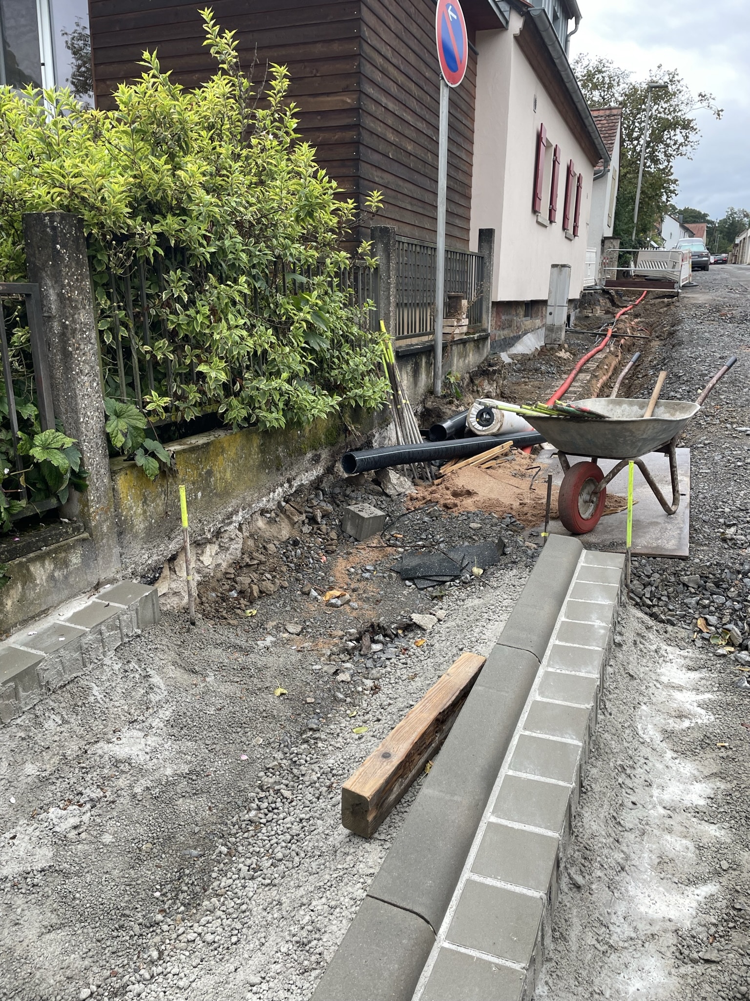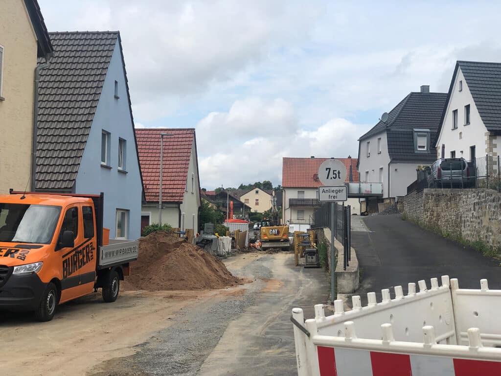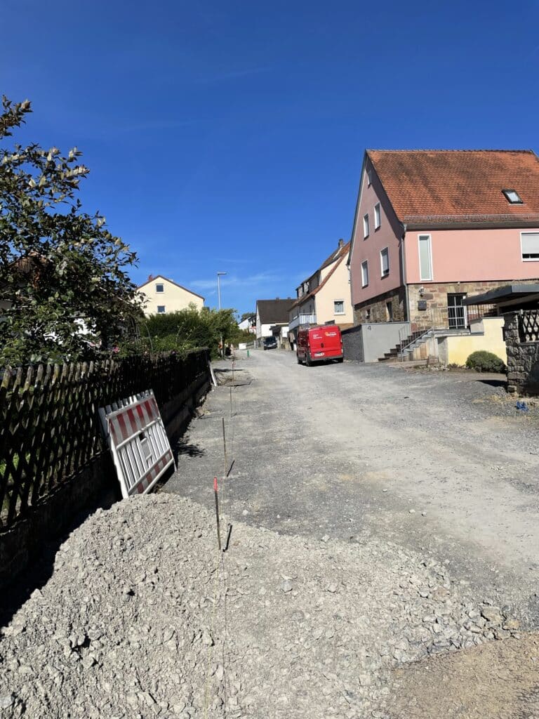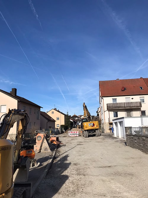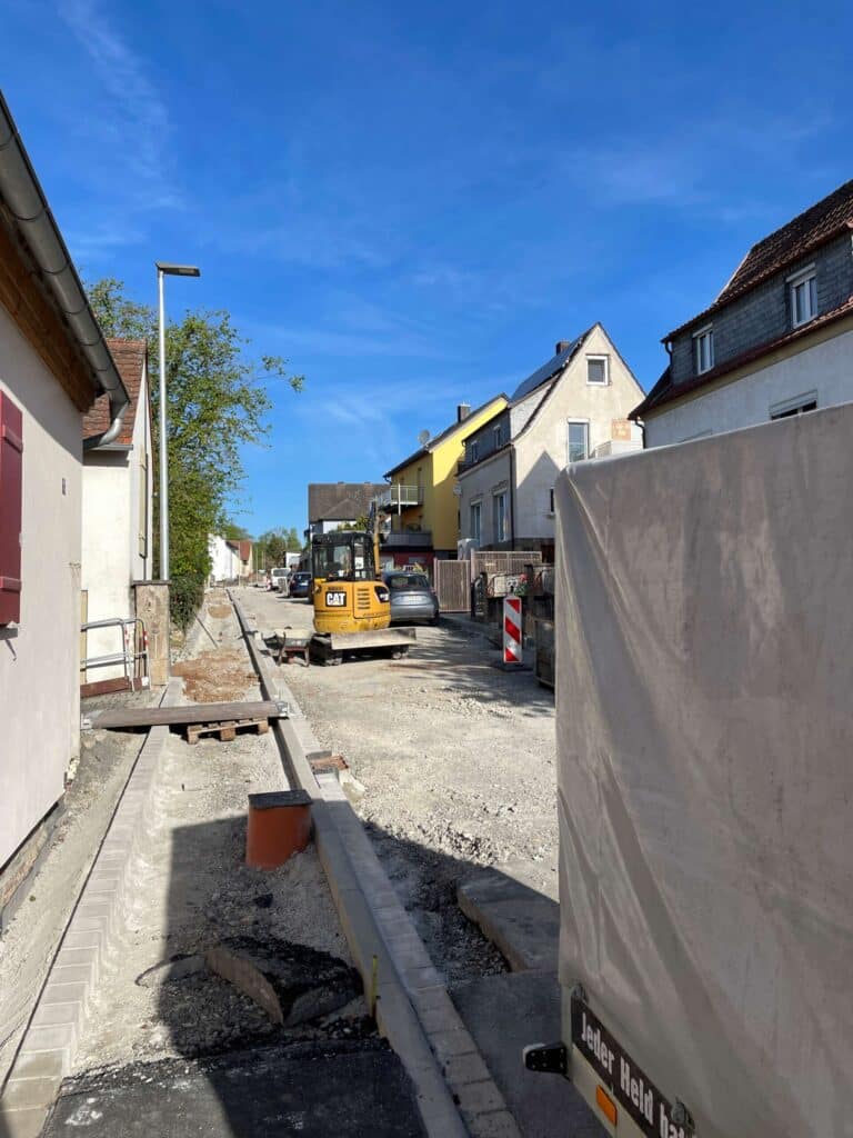 – weiterhin wurde bereits mit den Arbeiten für die neue Kanalleitung begonnen, aktuell wird hier vor den Anwesen Frühlingstraße 6/10 gearbeitet
