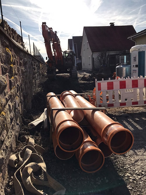 Die Kanalarbeiten sind aktuell auf Höhe Haus Nr.14