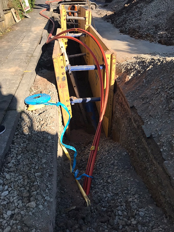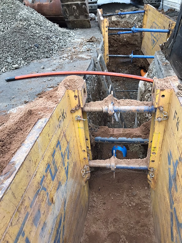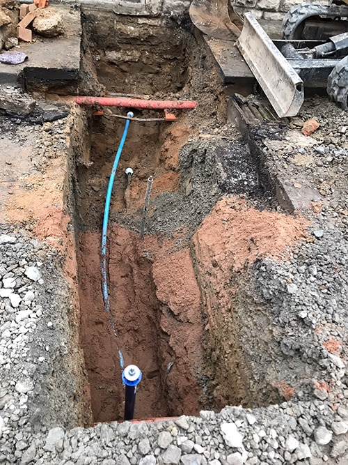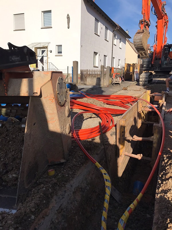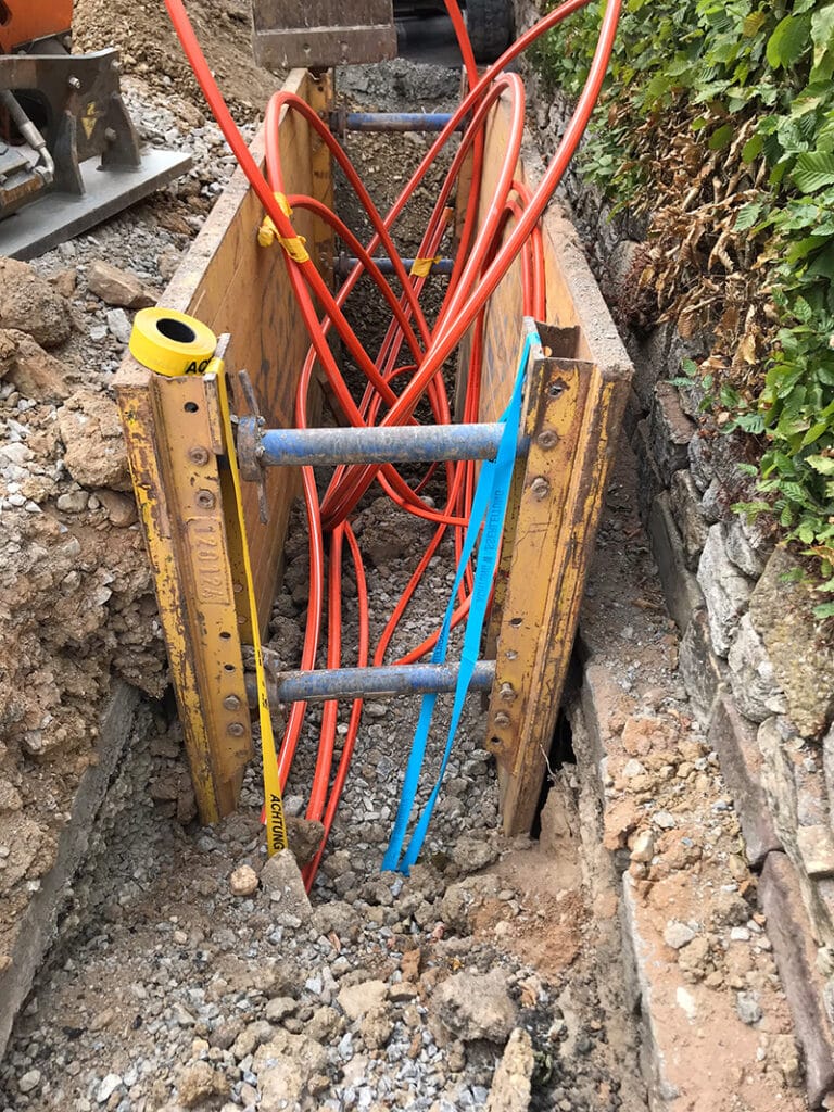 Im Zuge der Wasserleitungsverlegung wird auch gleich die neue Glasfaserleitung mit verlegt.