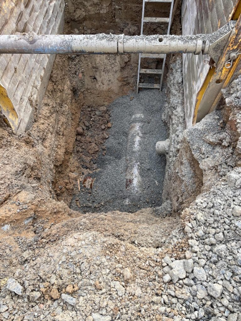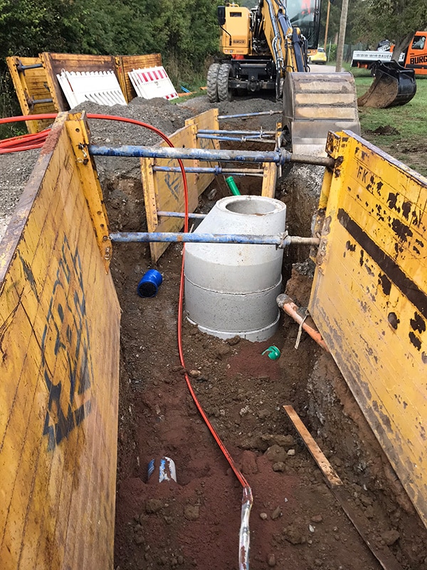 Die Verlegung der Hauptleitung Kanal befindet sich auf Höhe Hs.Nr.26.