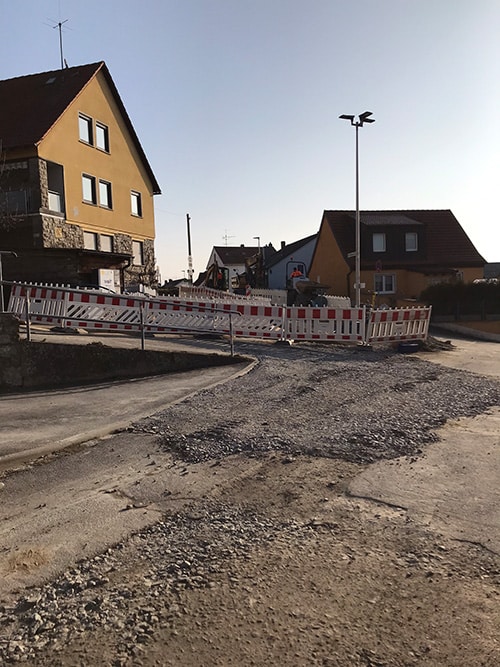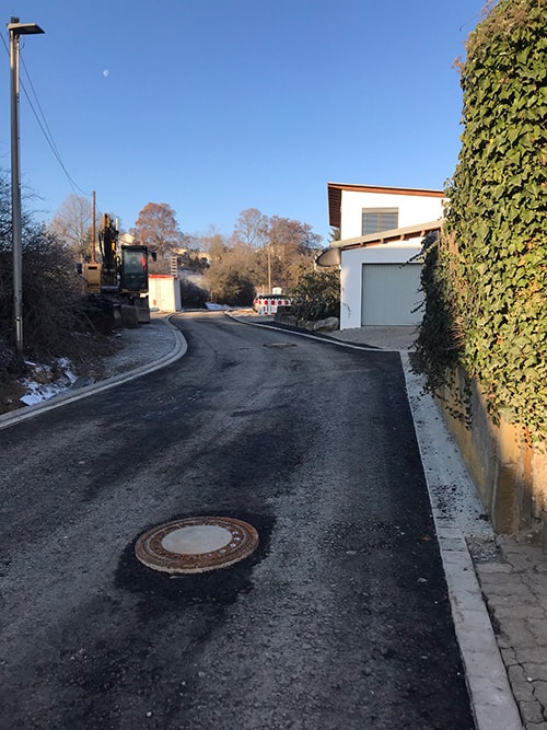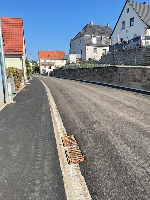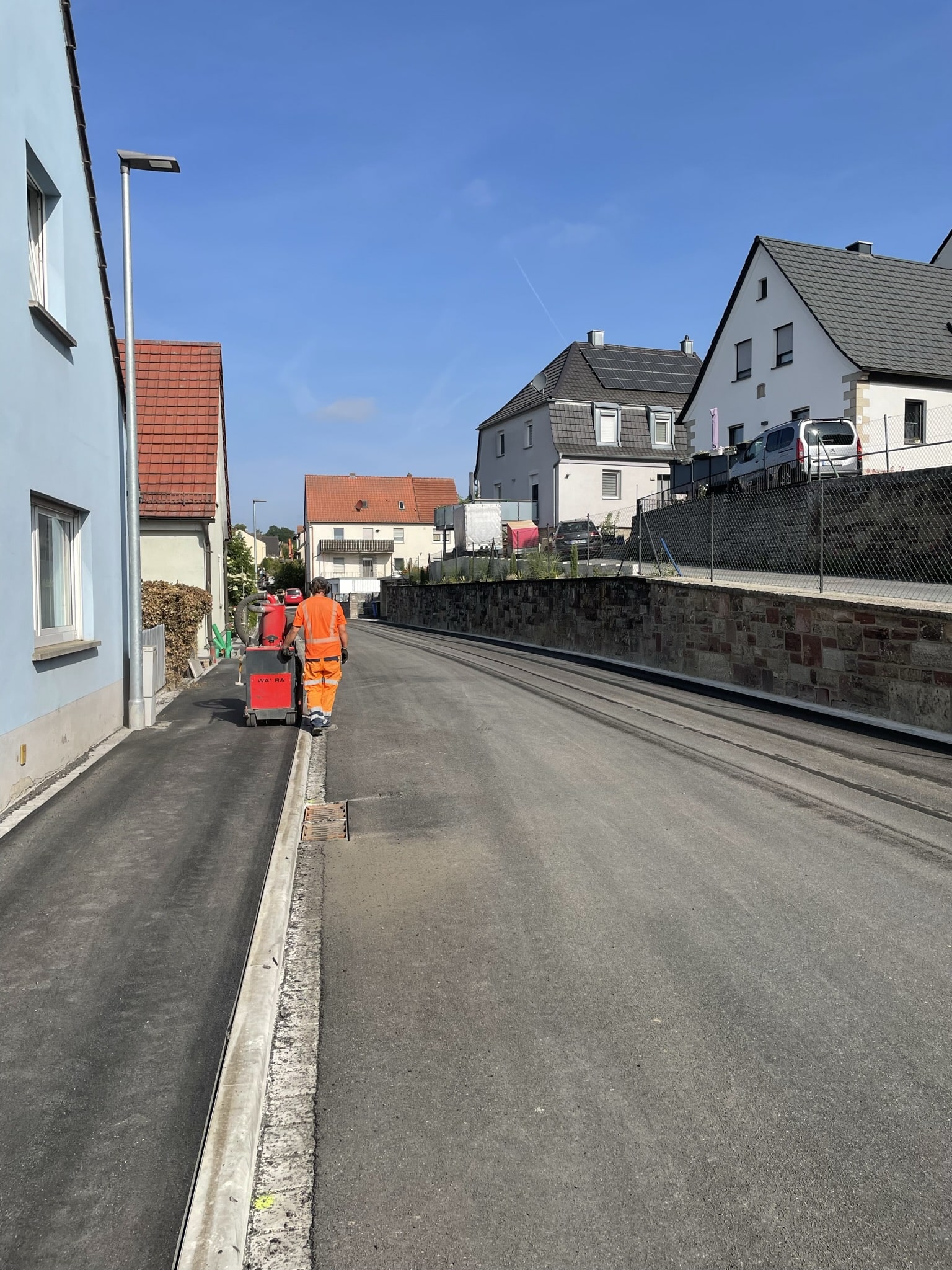 Die Fa. Burger Bau ist aktuell mit den Angleichungen der privaten Zugänge und Hofflächen beschäftigt, dies wird noch ca. 3-4 Wochen andauern.