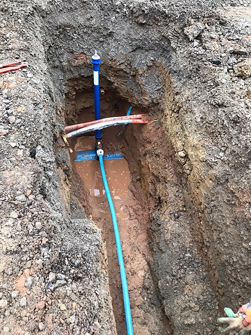 Heute werden noch die beiden Wasserhausanschlüsse für Haus 44 und 46 hergestellt.