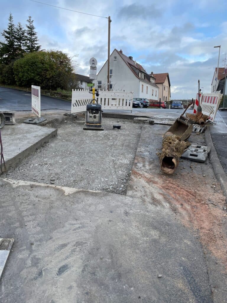 Die Fa. Burger Bau arbeitet derzeit an den neuen Wasserhausanschlüssen für die Anwesen Hs.Nr.13 und 15.