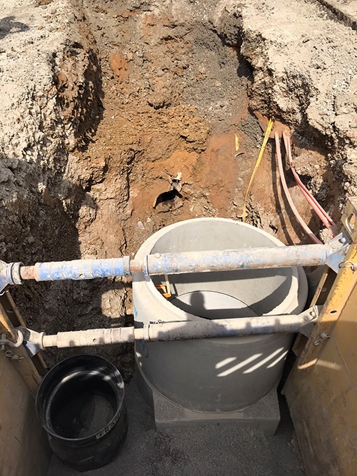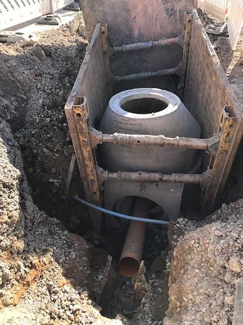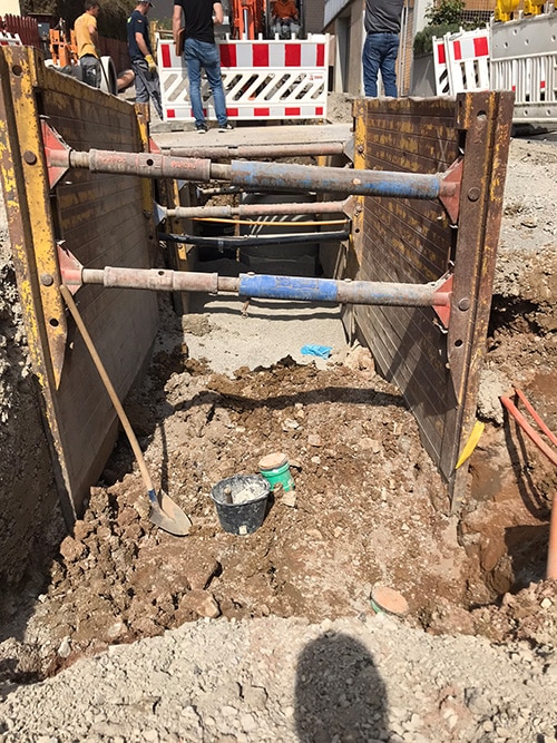 Als nächstes erfolgt dann die Umbindung der Kanal-Hausanschlüsse an die neue Leitung.