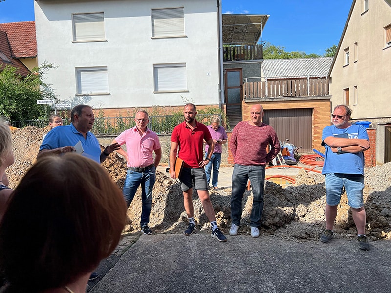 Mit dem 2. Bauabschnitt wird am Montag, den 11.7.2022 begonnen. Lt. den Verantwortlichen soll der Abschnitt von Hausnr. 2 bis 30 Mitte August beendet sein. Die Bautätigkeit wird dabei immer auf einer Strecke zwischen 20 und 30 Metern erfolgen. Zum Thema Müllentsorgung wurde mit dem team-orange und der Firma Knettenbrech & Gurdulic vereinbart, dass diese an den Abfuhrtagen die Weinbergstraße durchfahren können. Die Bitte an die Anlieger lautet, dass sie die Tonnen bis 6 Uhr ganz normal bereitstellen. Parken ist einseitig erlaubt, allerdings nicht im direkten Bereich der Bauarbeiten und unter Beachtung der Baustellenbeschilderung. Jeden Freitag um 9 Uhr findet ein sog. Jour Fixe statt, zu welchem die Anlieger gerne kommen und auftretende Fragen u.ä. klären können. Natürlich können die Anlieger jederzeit auch vor Ort auf Polier Marius Geis zugehen. Die neue Kanal- und Wasserleitung wird von Seiten der Gemeinde bis zu den Grundstücksgrenzen gelegt. Die Eigentümer der im Sanierungsgebiet befindlichen Häuser werden gebeten, sich zu überlegen, ob sie ihre Anschlüsse zur Hausentwässerung auf privatem Grund erneuern möchten. Falls dies gewünscht ist, müssen die Eigentümer in Eigenregie eine Firma beauftragen. Ist ein Glasfasereinbau gewünscht muss dies vom jeweiligen Eigentümer bei der Telekom beantragt werden.