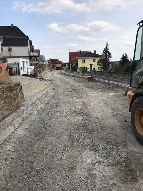 Ende Mai haben nun die Arbeiten im ersten Bauabschnitt begonnen. Die Straße oberhalb der Storchstraße bis zur Verbindungsstraße zur Ziegeleistraße wurde bereits aufgebaggert und mit den Arbeiten gestartet.